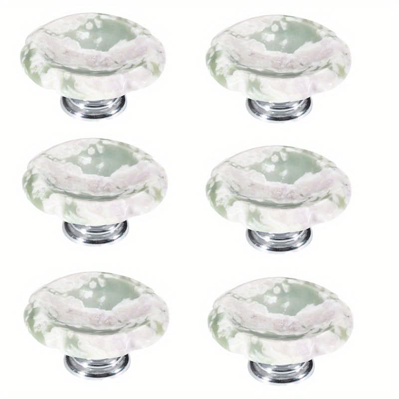 Add a unique touch to your home with these 6-pack stone flower cabinet handles. Designed with a natural relief stone and mounted on a durable aluminum base, these handles bring an organic, textured look to drawers, wardrobes, and cabinet doors. The cup-style design is not only visually striking but also provides a comfortable grip for easy use.