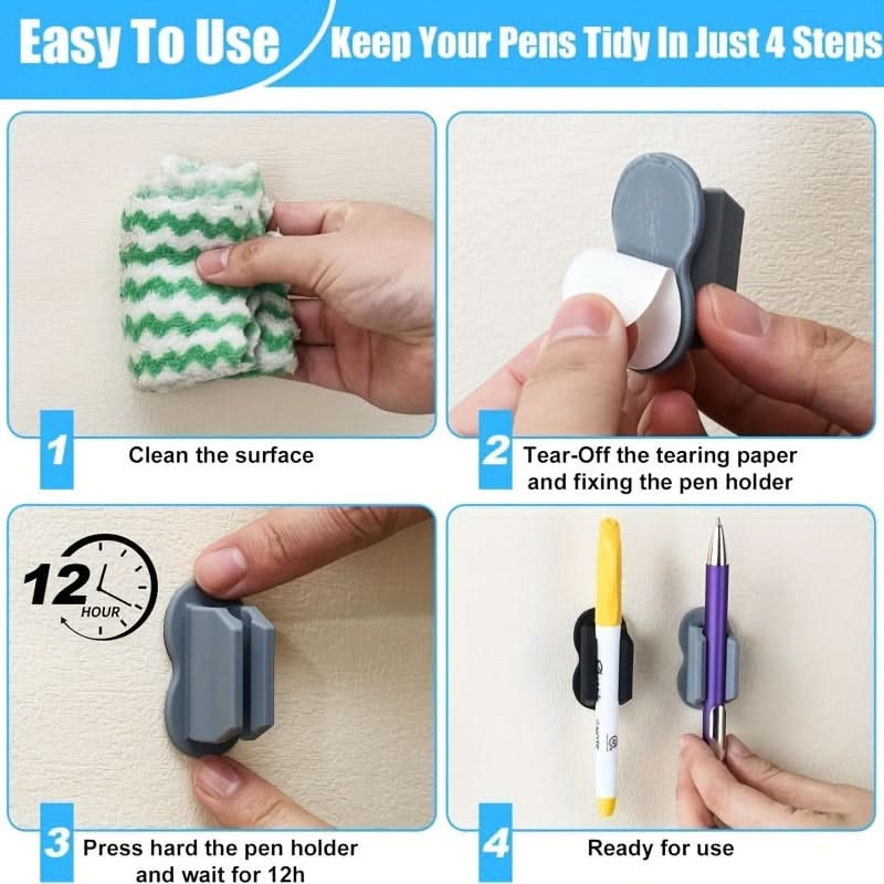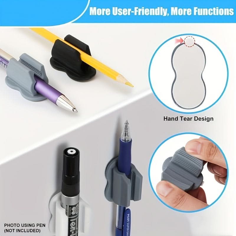 Transform your workspace with our 6-Pack Silicone Pencil Holders! Designed for versatility, these sticky desk and wall-mountable pen grips keep your writing tools organized and within reach. Made from high-quality silicone, they ensure a secure hold on any surface, preventing slips and spills.
