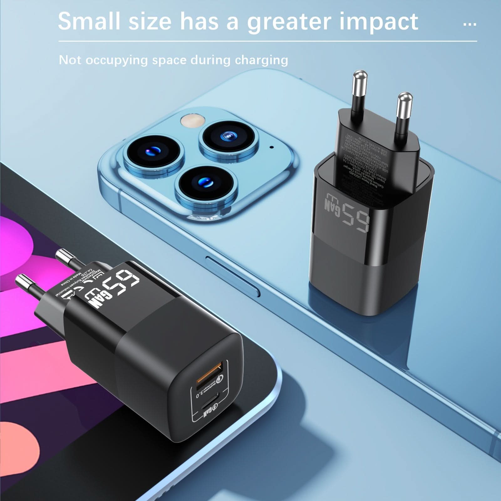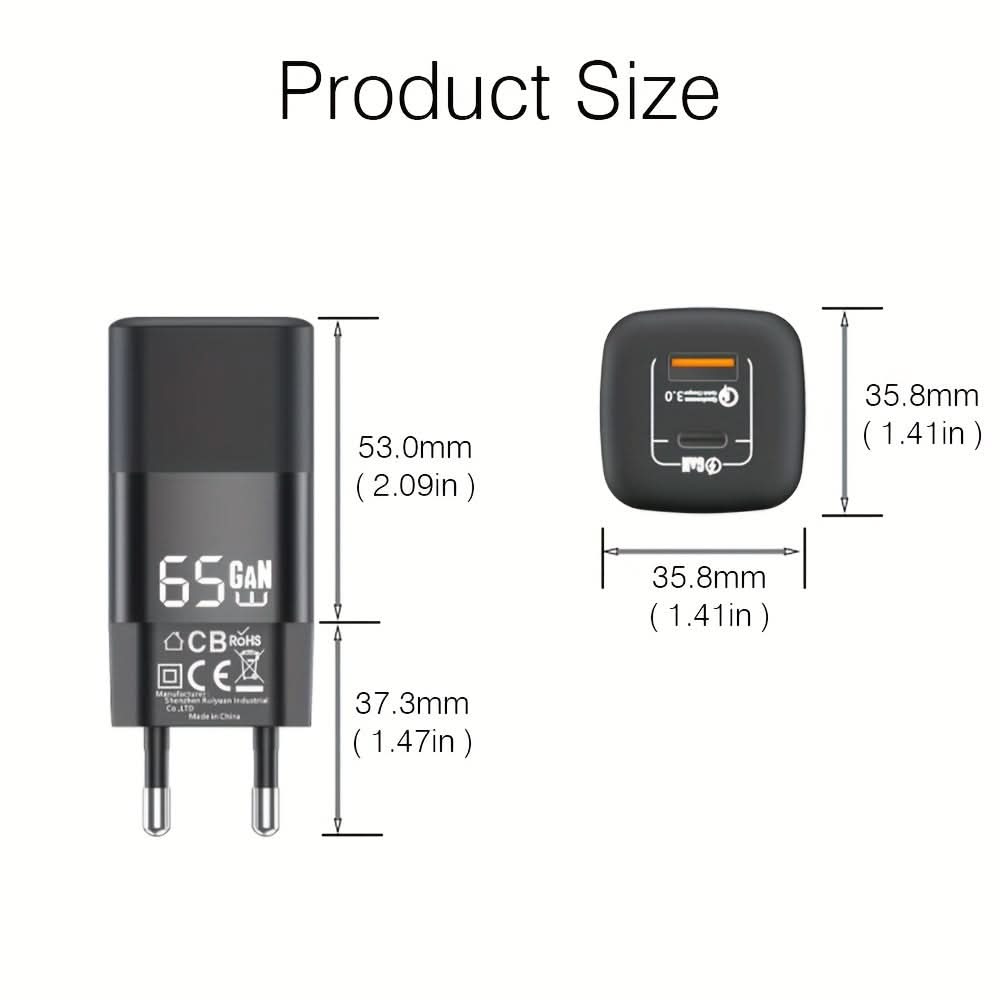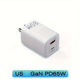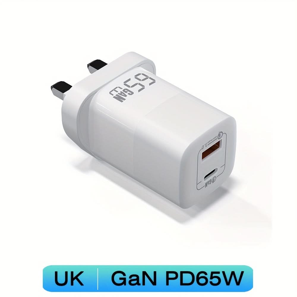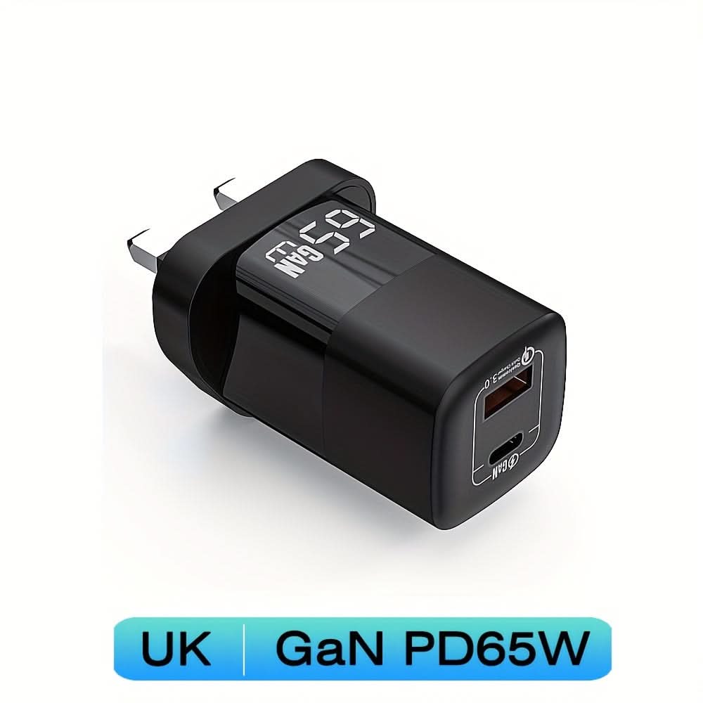 The UGOURD 65W GaN Power Adapter is a compact, high-performance charger designed for fast, efficient charging of a variety of devices. With support for PD 3.0 and QC4 protocols, this adapter delivers super-fast charging speeds for your laptop, MacBook Pro, iPhone, iPad, and other USB-C devices. Its 65W output (20V/3A) ensures quick recharges, while the GaN (Gallium Nitride) technology allows for a smaller, more energy-efficient design. Compatible with both 110V and 220V power outlets, this charger is perfect for both home and travel use. The universal USB-C connector makes it easy to charge your devices without the need for multiple adapters. Whether you're at home, at the office, or on the go, the UGOURD 65W GaN Charger is your go-to solution for fast, reliable charging.