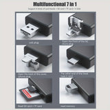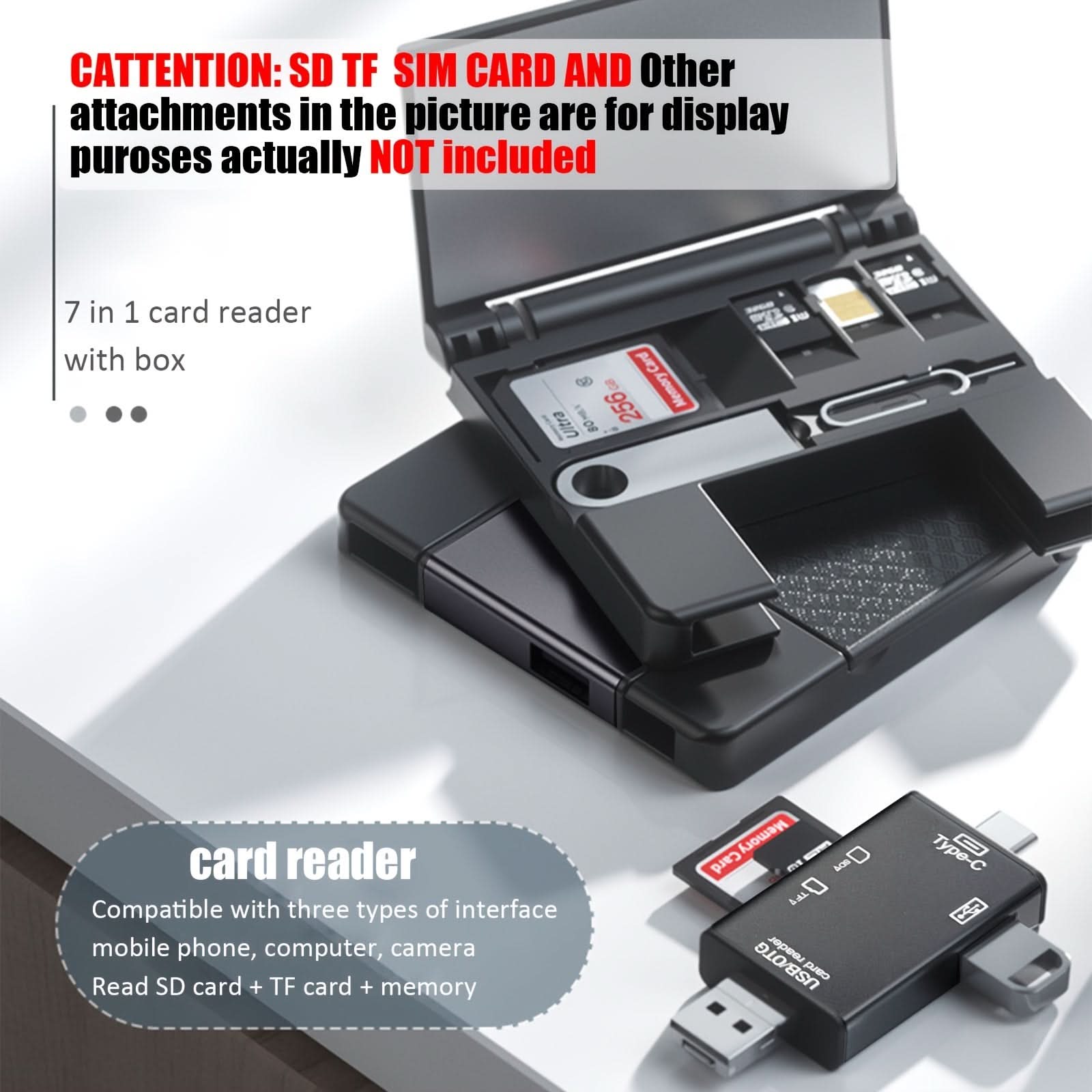 Enhance your mobile experience with our 7-in-1 OTG Card Reader for Smart Devices. This versatile adapter allows you to connect multiple memory cards and USB drives to your smartphone or tablet, making data transfer a breeze. Crafted from durable plastic with a sleek matte finish, it’s designed for everyday use while maintaining a stylish look.