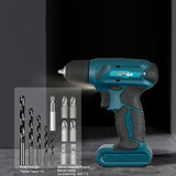 The LED working light provides optimal visibility in low-light conditions, making it ideal for use in tight spaces. The kit includes a variety of drill bits and accessories, so you’re ready for a wide range of tasks, from drilling holes to driving screws. Its ergonomic design and lightweight construction reduce hand fatigue, while the reliable power ensures precision and performance. Perfect for both beginners and seasoned DIYers, this drill kit is a versatile, must-have addition to your toolkit.