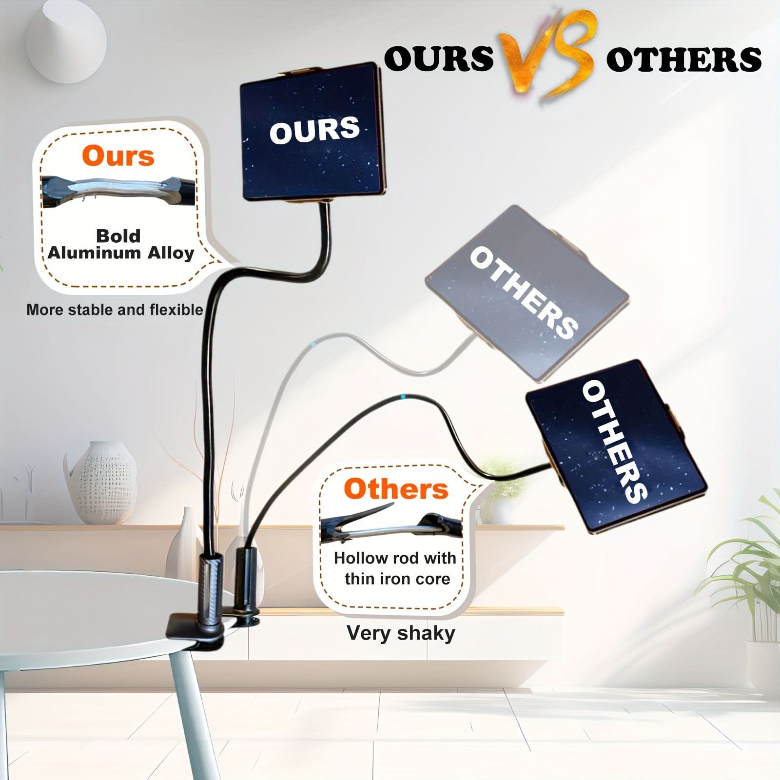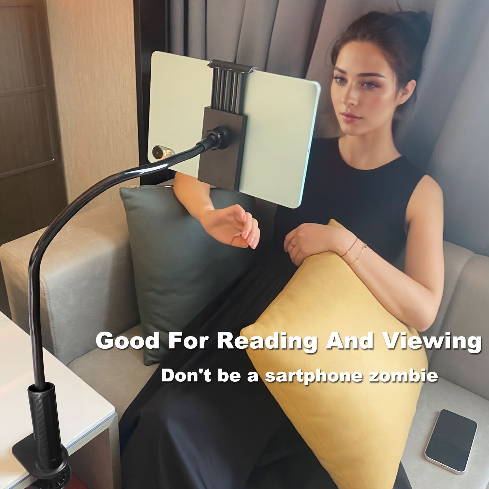 Enhance your viewing experience with this versatile Aluminum Gooseneck Tablet & Phone Stand Holder. Designed for a wide range of devices, including iPad Mini, Pro, Air, Kindle, Galaxy Tabs, and Nintendo Switch, this flexible stand holds your device securely in place, whether you're lounging in bed, relaxing on the sofa, or working at your desk.