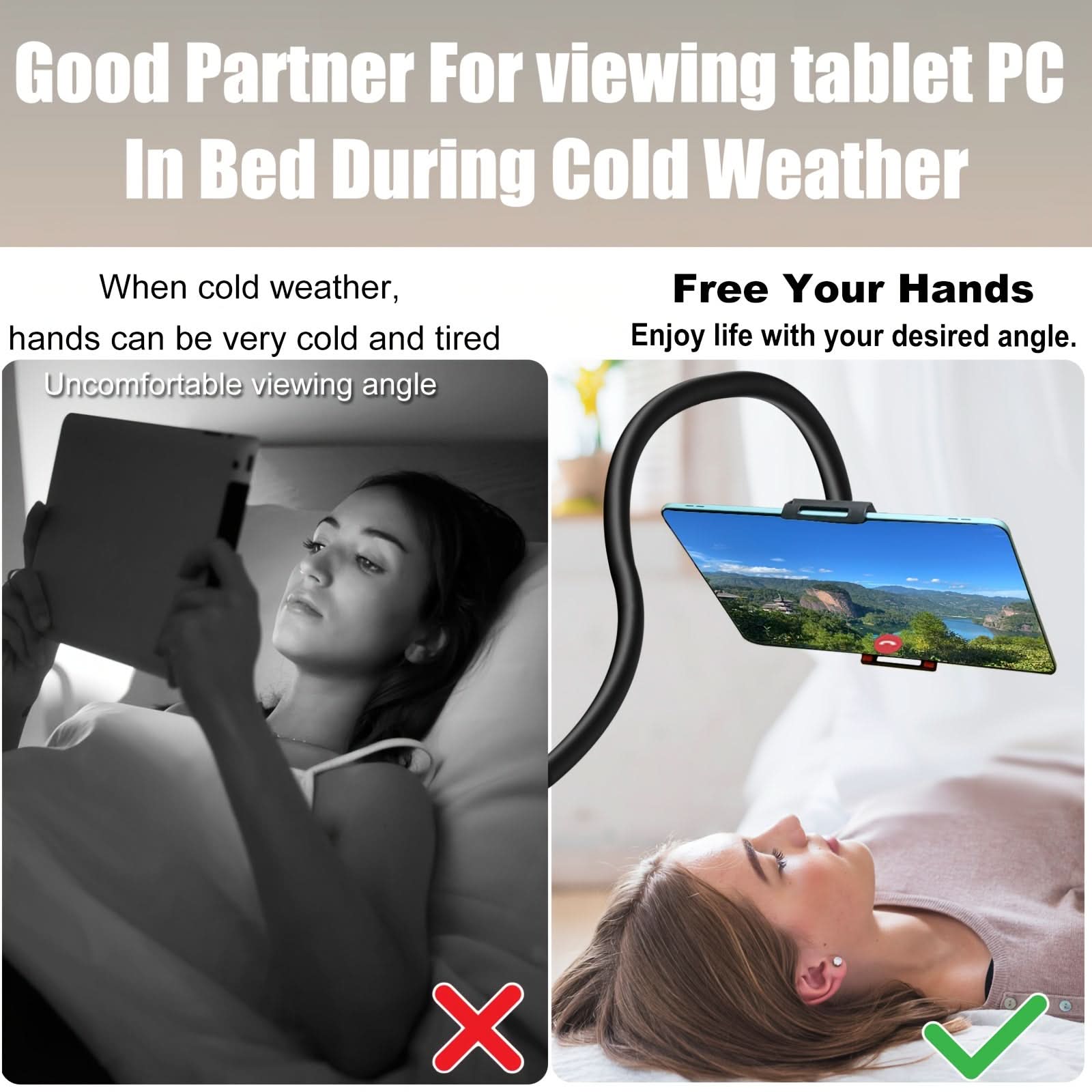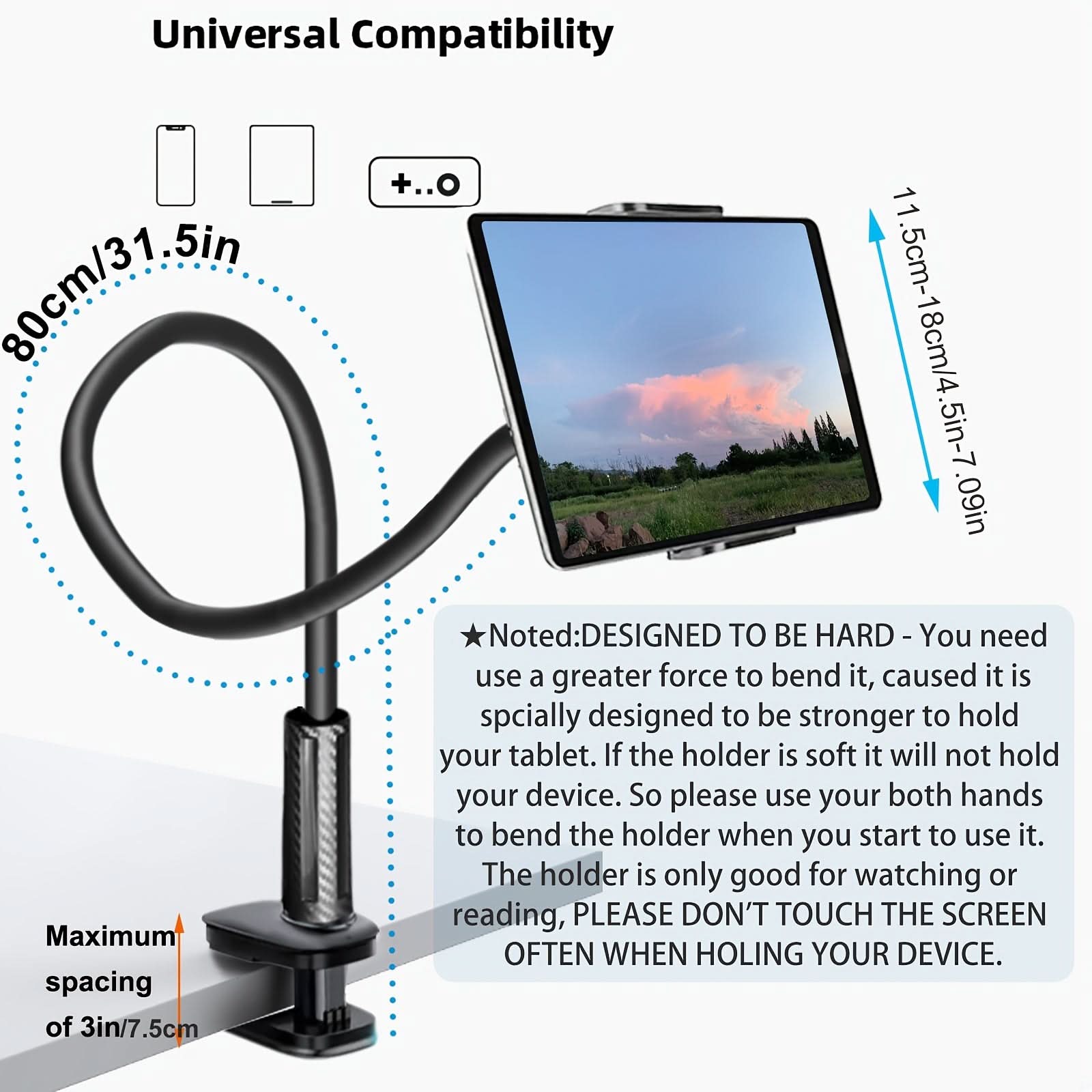 Crafted from durable aluminum magnesium alloy, the stand features a robust gooseneck arm that can be easily adjusted for the perfect angle. Its waterproof material ensures long-lasting use, making it ideal for everyday use and travel. The stand is compatible with devices ranging from 4.7 to 10.6 inches, providing hands-free convenience for reading, watching videos, or video chatting. A perfect gift for anyone who enjoys multitasking or needs a reliable stand for their tablet or phone!