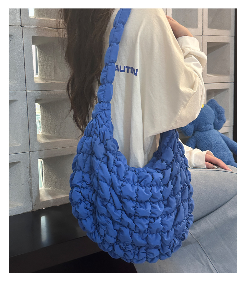 This autumn and winter cloud pleated shoulder bag combines high-end style with practicality. Designed with a commuter-friendly bubble texture, it offers large capacity and durability, making it perfect for women seeking a chic, functional bag for daily use.