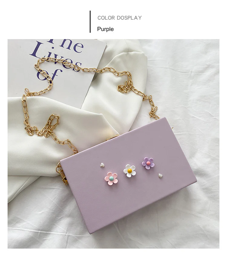 This stylish Korean version heart-shaped box bag features elegant pearl detailing and 3D flower accents. With a chain crossbody strap, this small square bag is the perfect blend of chic and functional for any occasion. Ideal for women seeking a fashionable accessory!