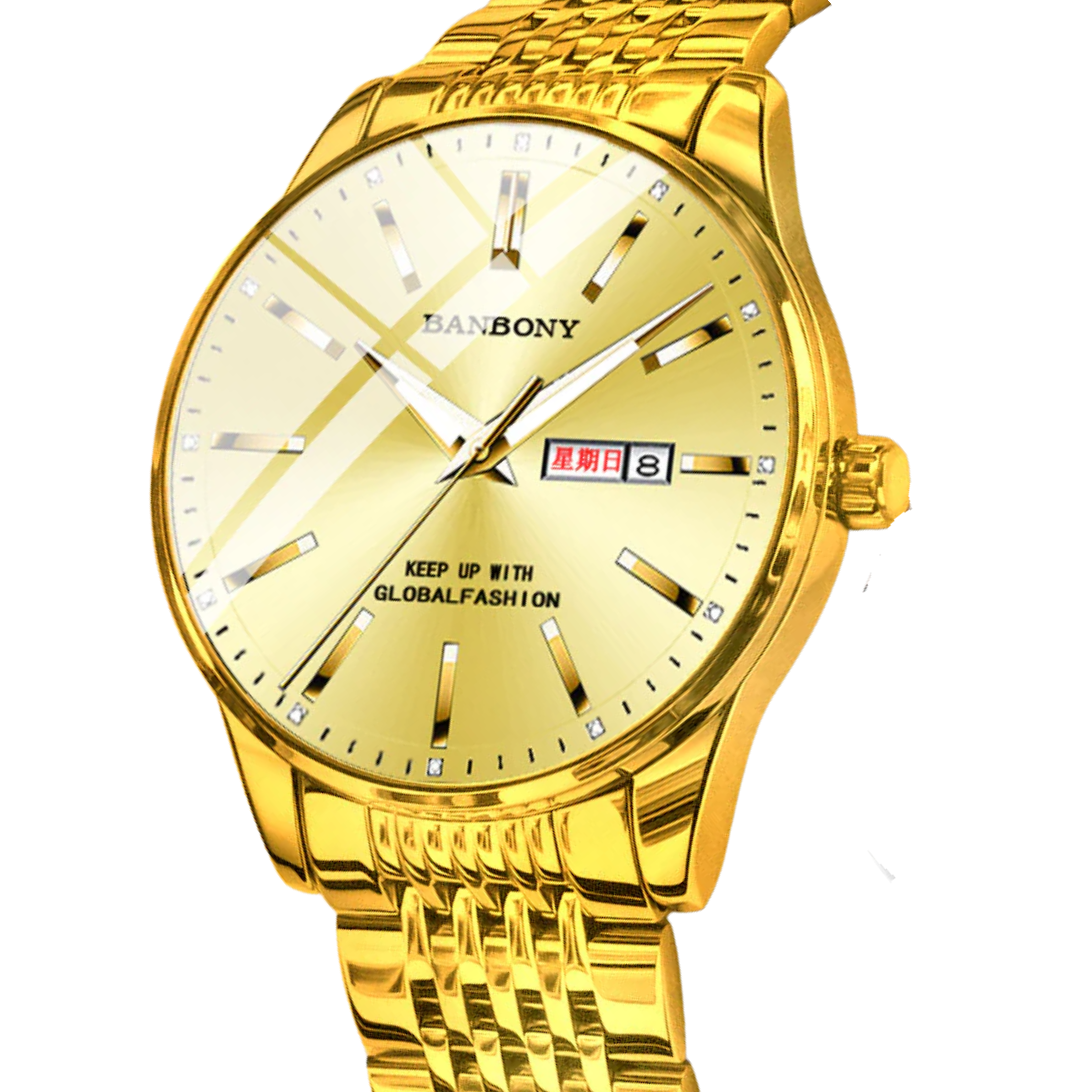 Features a luminous display with dual calendar function for both date and day, keeping you organized in style.