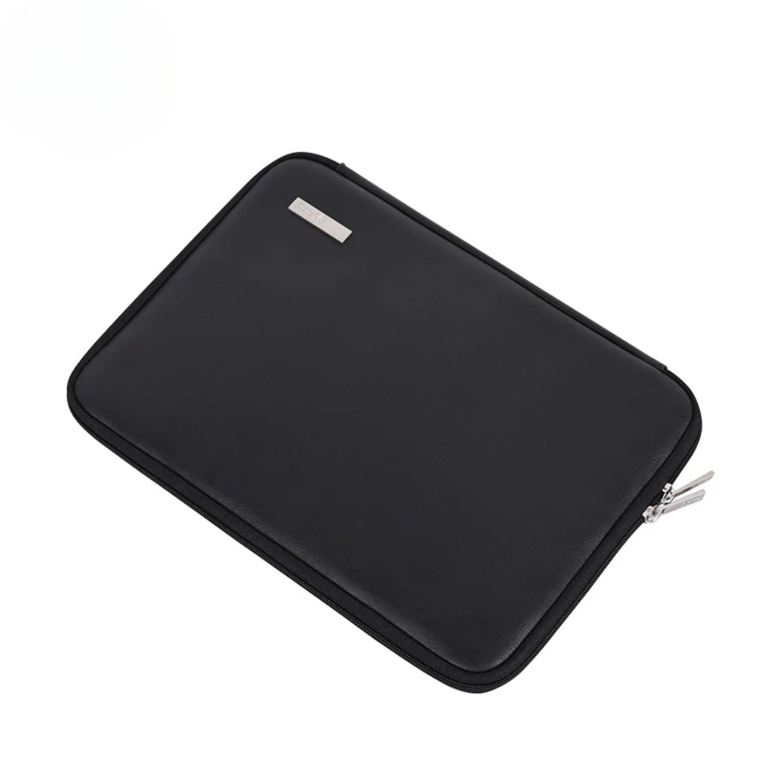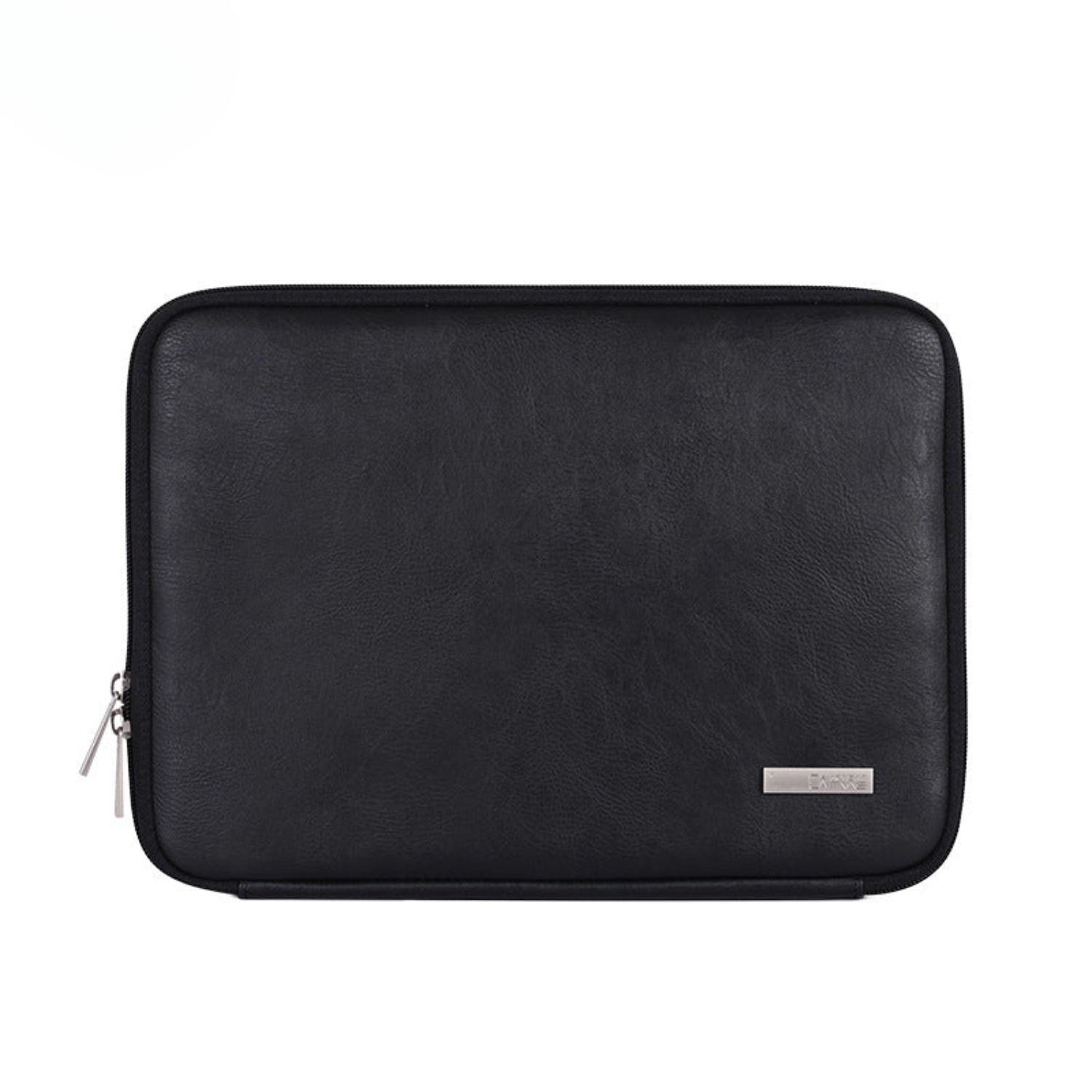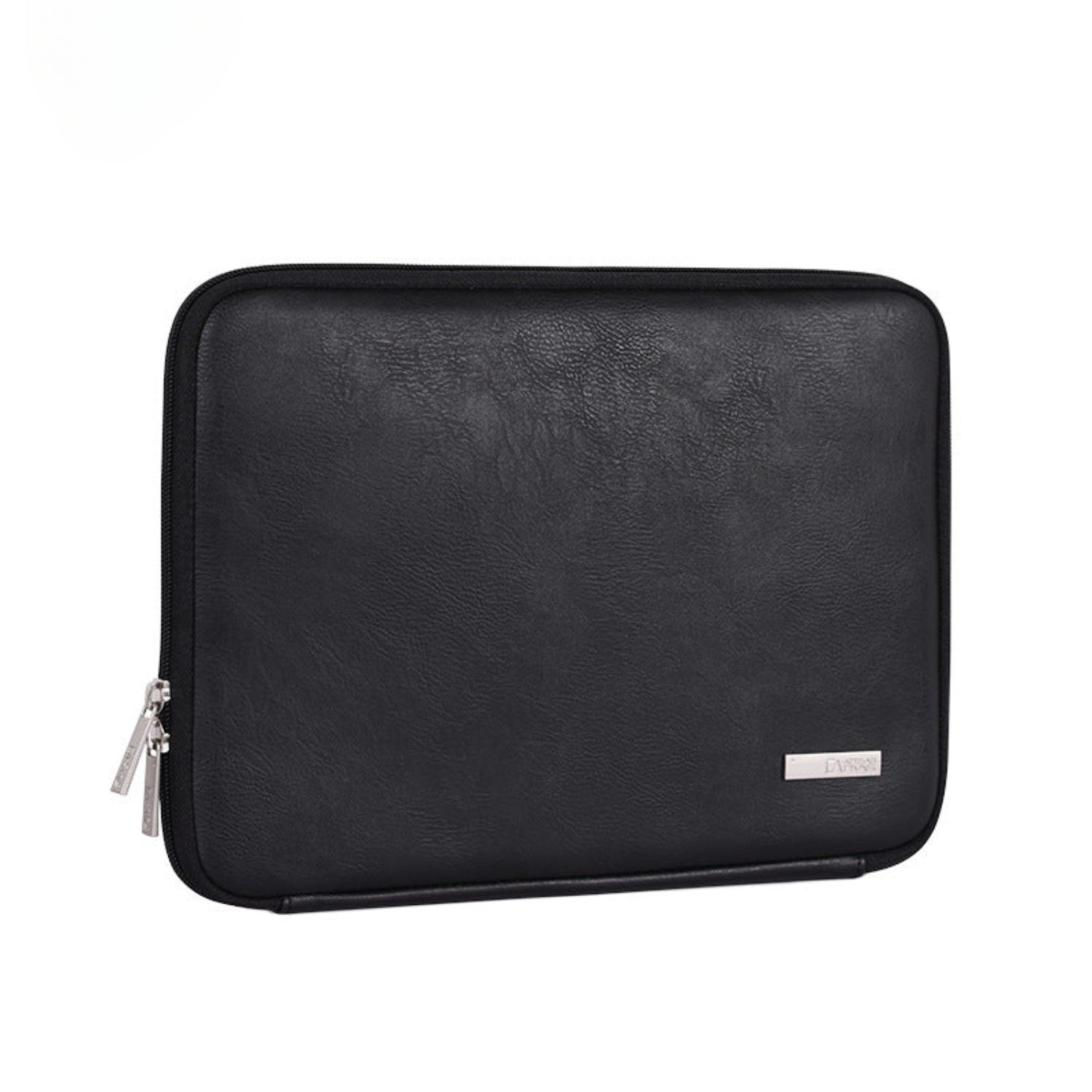 The solid black PU leather exterior is not only stylish but also wear-resistant and durable, making it ideal for everyday commutes, office use, or travel. A secure zippered sleeve keeps your laptop safely enclosed while maintaining a slim, streamlined profile that slips easily into backpacks or briefcases.