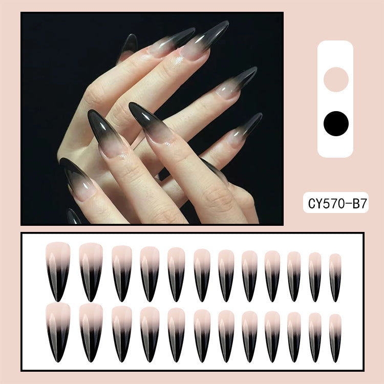 Make a statement with these stiletto press-on nails featuring a striking black gradient ombre effect. Designed in an extra-long length with a sharp teardrop silhouette, these nails add instant edge and drama to any look. Crafted from durable acrylic, they’re lightweight yet strong, ensuring a comfortable fit that lasts. The sleek gradient fade design offers a bold yet versatile style—perfect for nights out, parties, or anyone who loves an eye-catching manicure. Easy to apply with glue, these nails save you the hassle of salon visits while still giving you a flawless, professional finish at home. Sourced from Worldwide Suppliers, this trendy set brings global nail art fashion to your fingertips, letting you stay ahead of the style curve effortlessly.