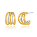 Make a bold statement with these triple hoop earrings, crafted in durable stainless steel and finished with radiant gold plating. Their layered curve design offers a contemporary twist on classic hoops, blending sleek lines with an eye-catching dual-tone finish. The gold and silver contrast adds depth and versatility, making them perfect for elevating everyday outfits or accenting special occasion looks. Lightweight yet impactful, the push plug closure ensures a secure, comfortable fit all day. These earrings are handpicked from abroad to bring a fashion-forward, high-end touch to your jewelry collection. Whether you're gifting or treating yourself, these hoops are a modern must-have for trend-savvy individuals looking to enhance their personal style.