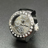 Elevate your style with this sleek quartz ring watch, a unique fusion of fashion and function. Designed for both men and women, this adjustable stainless steel ring features a classic round dial with a pointer display, ensuring timeless elegance with every wear. Its lightweight 8mm thickness offers a comfortable fit, making it a perfect accessory for daily wear or special occasions. Available in black, gold, rose gold, and silver, this modern finger watch adds a stylish touch to any outfit. The durable alloy case and ordinary glass mirror provide a polished look, while the quartz movement ensures accurate timekeeping. Whether you're looking for a trendy statement piece or a thoughtful gift, this minimalist ring watch is the perfect choice for fashion-forward individuals.