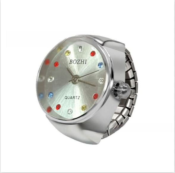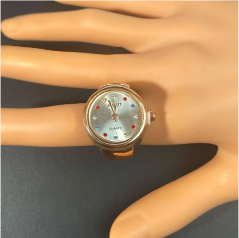 Add a touch of sparkle to your everyday look with this fashionable rhinestone ring watch. Featuring a sleek round dial and precise quartz movement, this stylish accessory combines elegance and functionality. The stainless steel band ensures a comfortable fit, while the colorful rhinestones add a dazzling touch. The pointer and number display offers easy time reading, and the 8mm slim profile keeps it lightweight and comfortable. Available in gold, silver, and rose gold, this versatile ring watch complements both casual and formal outfits. The alloy case and ordinary glass mirror provide durability, although it's not waterproof. Perfect for women seeking a chic statement piece that blends fashion and practicality.