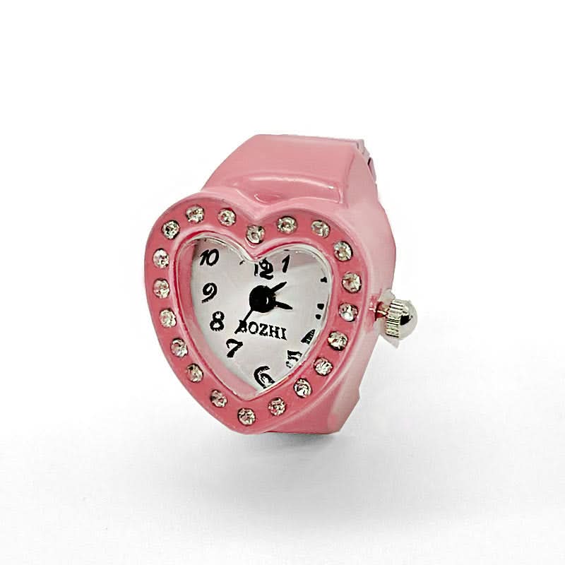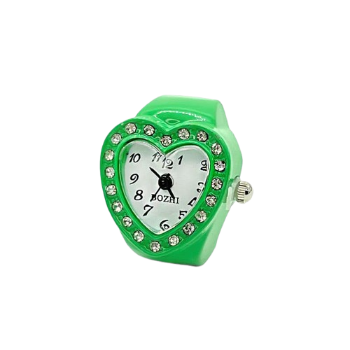 Add a touch of romance to your style with this elegant heart-shaped ring watch. Designed for women, it features a sleek 20mm heart-shaped dial adorned with sparkling diamond accents for a chic and feminine look. The quartz movement ensures accurate timekeeping, while the pointer display makes it easy to read. The lightweight 8mm thickness and stainless steel band offer a comfortable fit for all-day wear. The alloy case and ordinary glass mirror provide durability and a polished finish. Though not waterproof, its stylish design makes it a perfect accessory for casual and dressy outfits alike. Available in a variety of fashionable colors, including white, yellow, red, purple, green, blue, black, and pink, this ring watch is the ideal blend of fashion and function for any occasion.