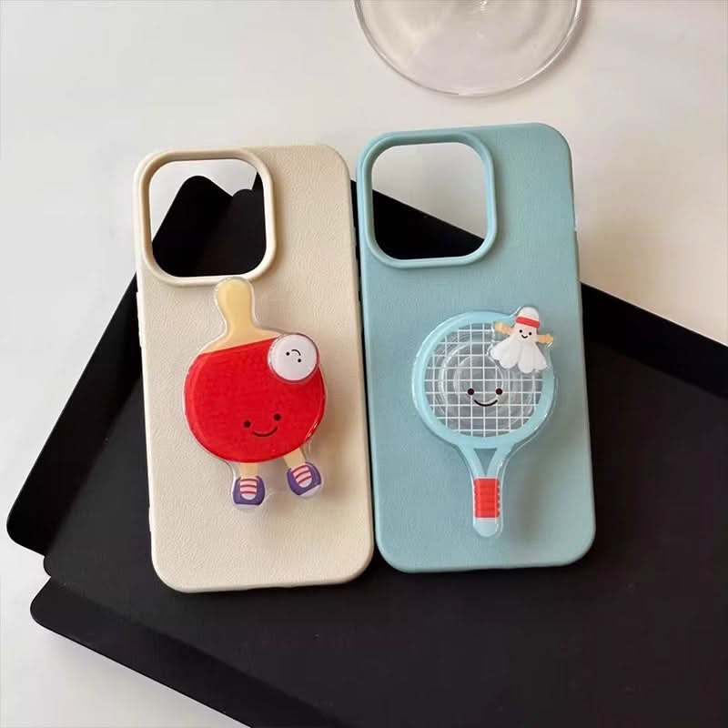 Bring a touch of fun to your phone with this candy-colored, cartoon-inspired iPhone case! Designed with a playful table tennis and badminton theme, this case is made from high-quality imitation leather for a soft yet durable feel. The built-in stand makes watching videos or video chatting hands-free a breeze. Offering full protection from drops and scratches, this case ensures your phone stays safe while adding a unique style. The vibrant candy colors and quirky design make it the perfect accessory for those who love fun, functional, and fashionable phone protection. Get ready to turn heads while keeping your phone safe with this eye-catching and practical case!