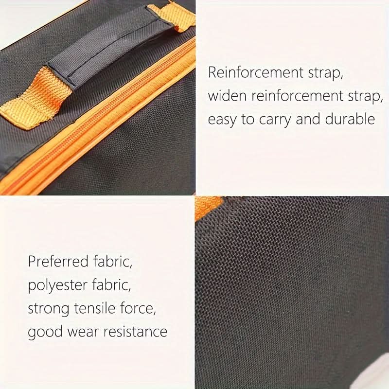 Keep your tools organized and easily accessible with this set of 3 durable canvas tool bags. Designed for versatility, these bags are perfect for car maintenance, home repairs, or gardening tasks. Made from high-quality canvas material, they are built to withstand daily wear and tear while remaining lightweight and foldable for convenient storage. Each bag features a spacious interior with sturdy zippers to secure your essentials, making them ideal for both small tools and accessories. The bold black and orange design adds a professional touch, ensuring your gear stays stylish and practical. Whether you're a DIY enthusiast or a professional, these portable tool bags make it easy to carry and organize your equipment wherever you go. Upgrade your storage solution today with this reliable and efficient set!