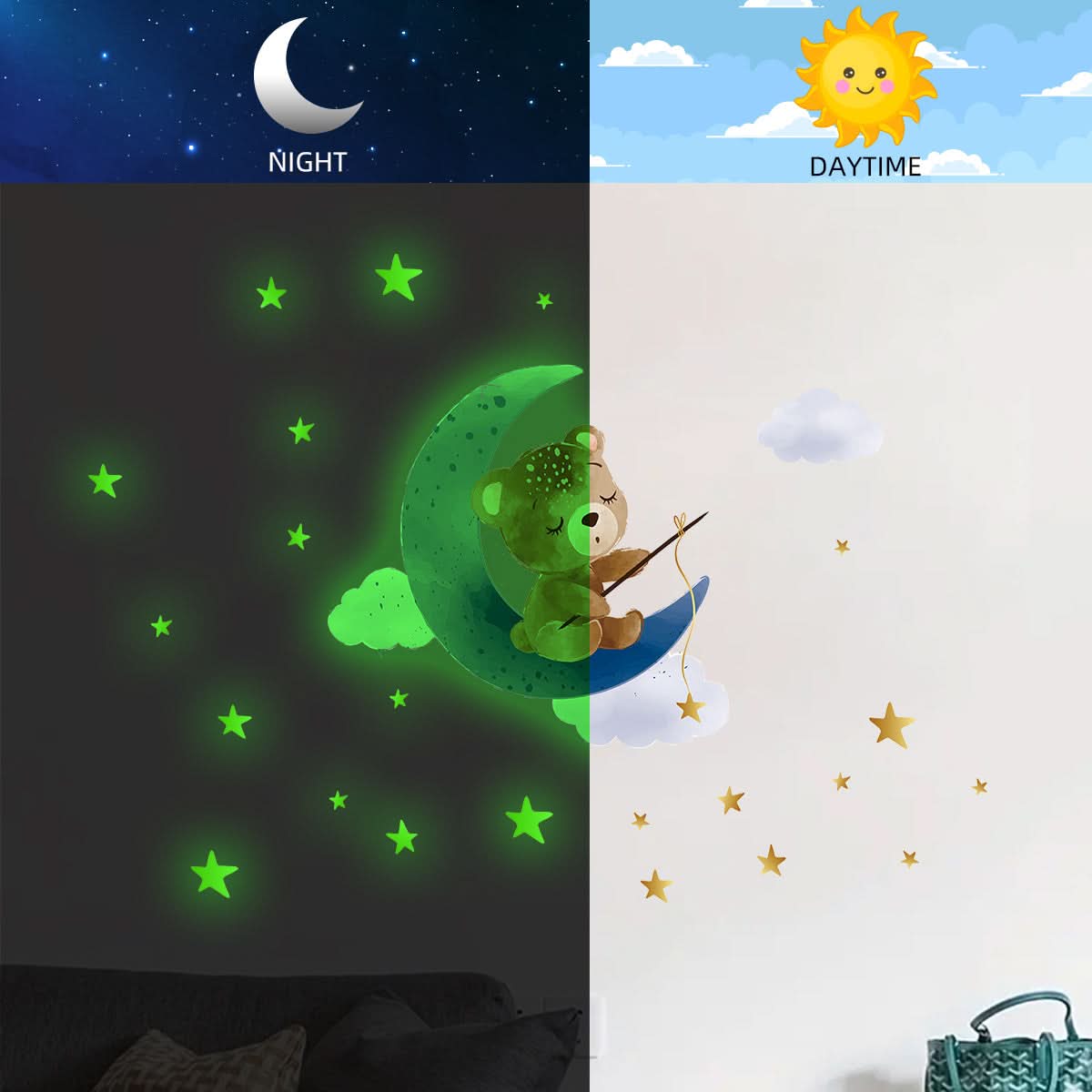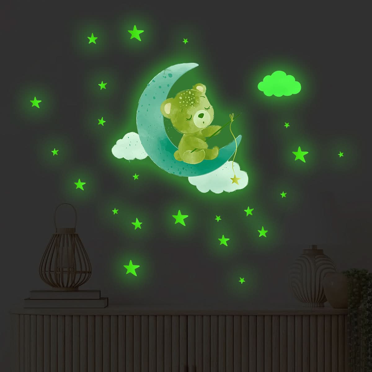 Brighten up your child’s room with these charming Cartoon Teddy Bear and Moon Wall Stickers! These self-adhesive, PVC decals bring a playful touch to nursery and bedroom decor, featuring luminous stars and adorable teddy bear characters that glow softly in the dark. Ideal for adding warmth to your little one’s space, these stickers are easy to apply on any smooth surface like plastic or walls. The semi-matte finish reduces glare, creating a subtle, cozy look both day and night. Detachable and safe for single-use, they’re perfect for temporary setups or seasonal decoration, helping you transform any room into a comforting haven. Add an enchanting, whimsical element to your nursery decor with these glow-in-the-dark wall stickers.