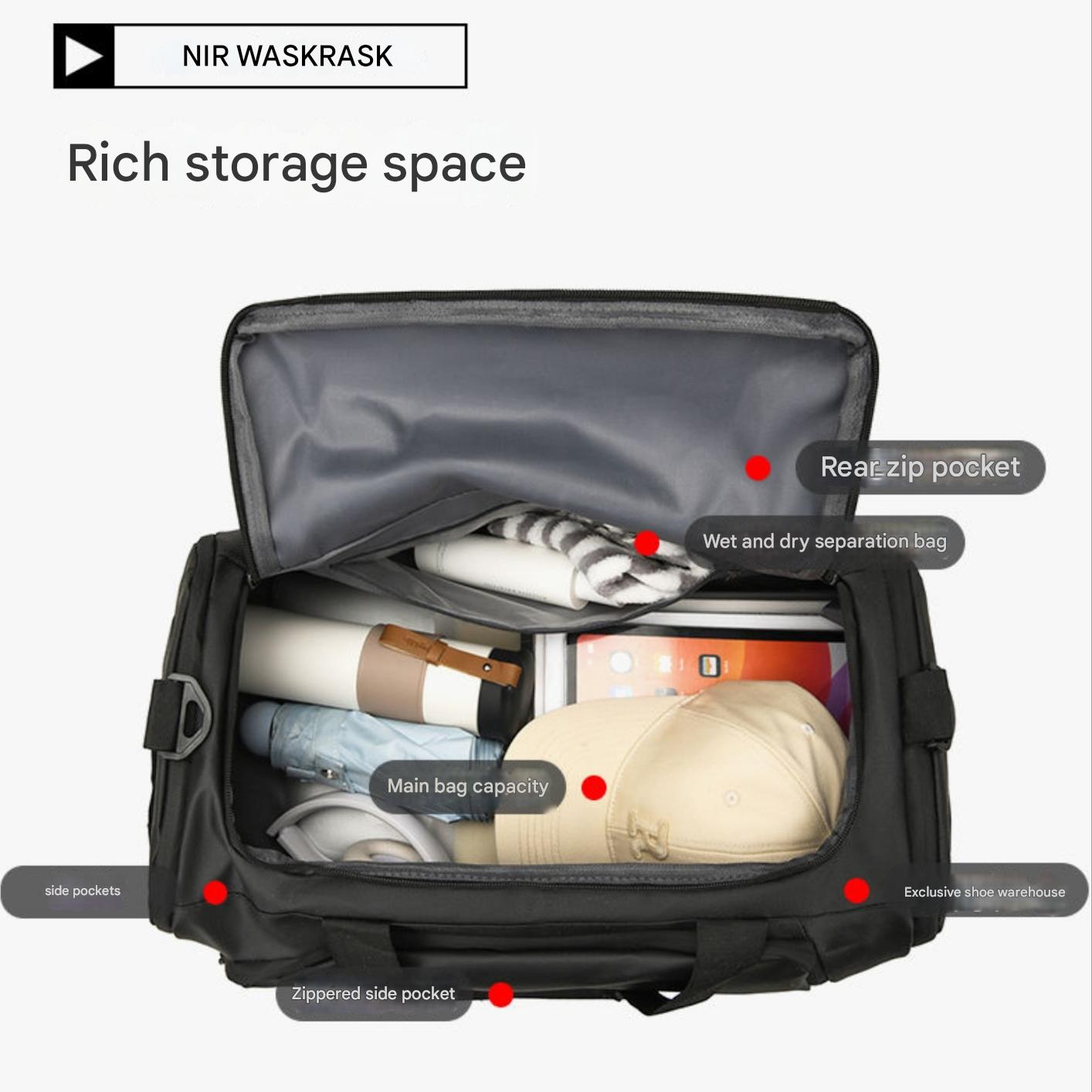Crafted from high-quality, water-resistant materials and featuring a spacious interior, it offers ample storage for your workout gear, tech, or travel essentials. The minimalist business-casual design adds a polished edge, while its lightweight structure makes it easy to carry wherever you go.