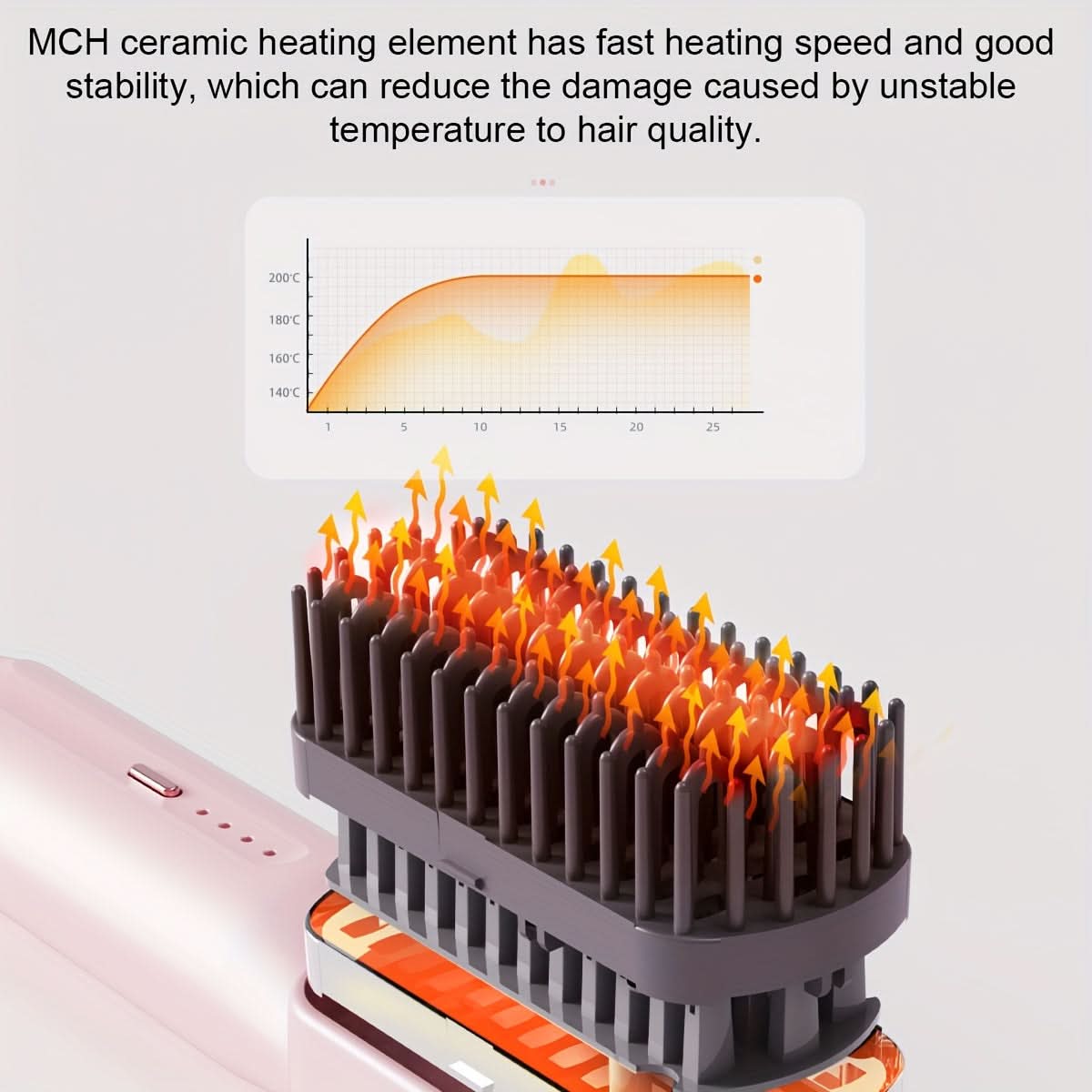 The Ceramic Mini Hair Straightening Comb offers fast, salon-quality results with its 4 adjustable temperature settings and quick heat-up feature. Perfect for both wet and dry hair, this compact straightening tool delivers sleek, shiny styles that last. Its ceramic heating body ensures even heat distribution, reducing damage and promoting smooth, frizz-free hair.