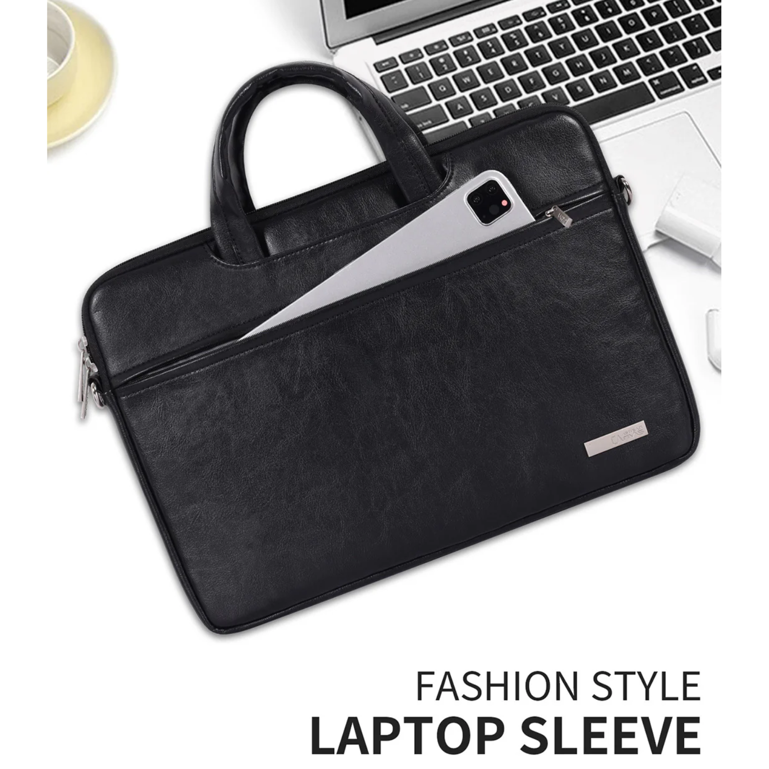 Sleek, professional, and built for protection—the PU Leather Laptop Sleeve is your go-to case for everyday carry. Designed to fit 13", 14", and 15" laptops from brands like Huawei, Xiaomi, Asus, and Apple, this solid black briefcase-style sleeve keeps your tech safe in style. It features a waterproof and shock-resistant PU leather exterior paired with a soft polyester lining to cushion your device. Two zippered compartments—main and front—offer convenient space for chargers, tablets, or documents without adding bulk. The minimalist solid-color design makes it perfect for business, travel, or campus life. Lightweight and durable, this case is ideal for anyone who needs a balance of fashion and function. Handpicked from Abroad, it's more than just a laptop sleeve—it’s a smart choice for a global lifestyle.