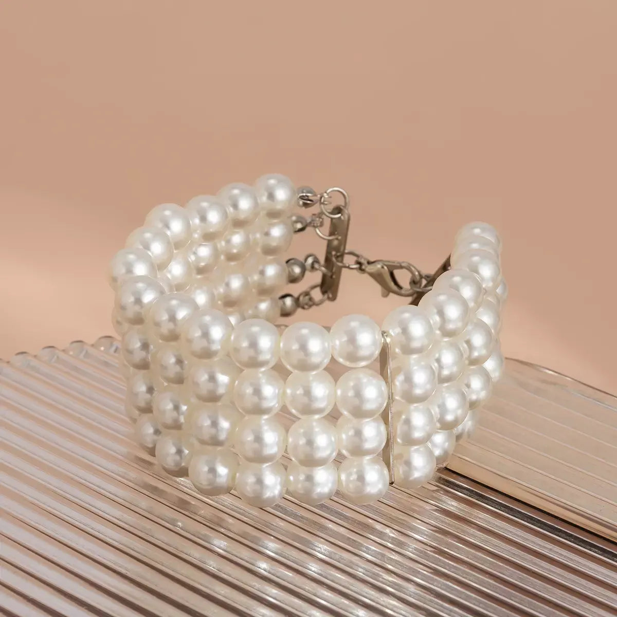 Elevate your wrist game with the Classic Wrap Chunky Pearl Bracelet, a bold yet timeless piece inspired by French elegance. Featuring four layers of radiant imitation pearls, this bracelet adds instant sophistication and volume to any outfit—whether it's a casual coffee date or an evening soirée.