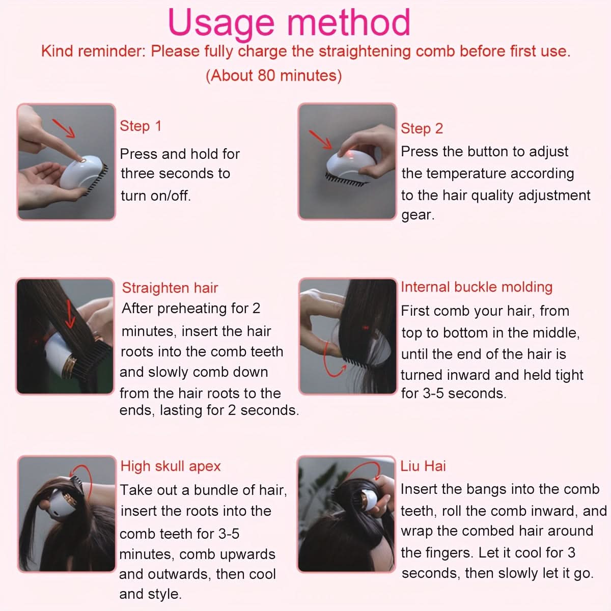 Achieve sleek, salon-worthy hair anytime, anywhere with the Cloud Prime USB Ceramic Hair Straightener Comb. This portable mini straightening tool features advanced ceramic technology and anti-scald teeth, ensuring safe and efficient styling for all hair types.Equipped with a 1500mAh rechargeable lithium battery, this USB-powered straightener delivers cordless convenience, while its dual-voltage compatibility makes it perfect for travel. The compact, lightweight design fits easily in your bag, so you can touch up your look on the go.