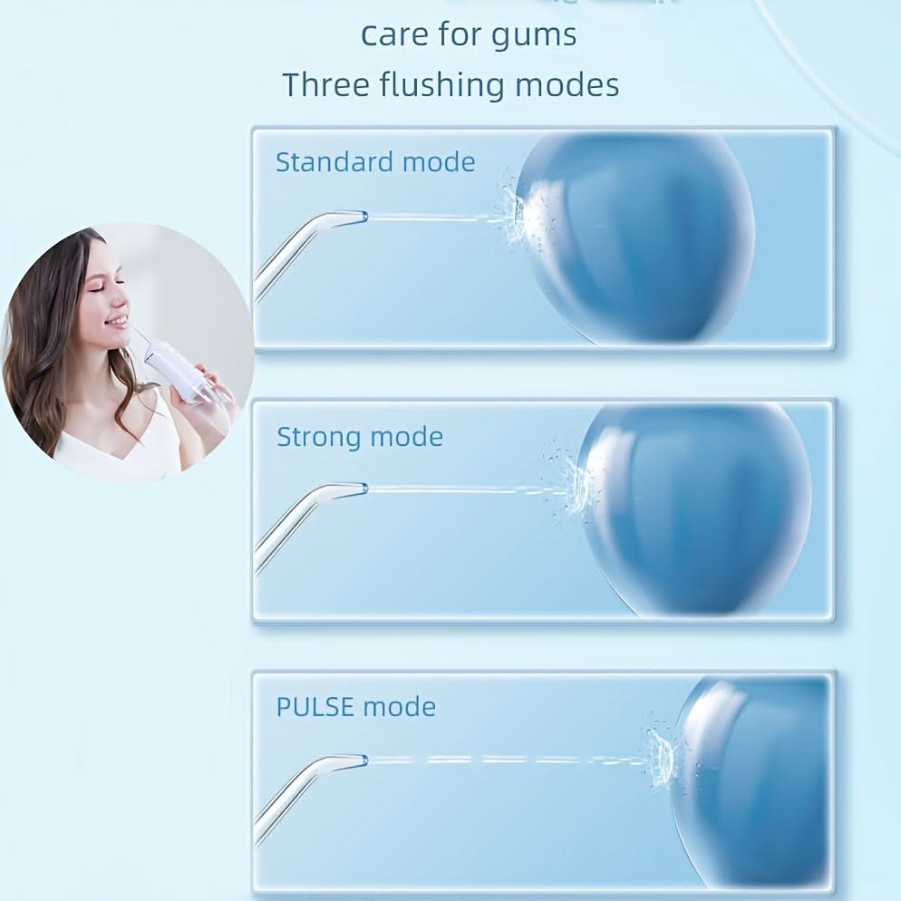 Experience superior oral hygiene with this cordless 4-in-1 water flosser, perfect for deep cleaning at home or while traveling. Featuring a powerful jet and multi-mode nozzles, this flosser effectively removes plaque and food particles, ensuring cleaner teeth and healthier gums. The built-in 800mAh rechargeable lithium battery offers long-lasting use, and the USB charging capability makes it easy to charge anywhere. Its compact, portable design makes it ideal for those on the go, fitting effortlessly into your travel bag. Whether you're looking for a convenient dental solution for everyday use or a thoughtful gift, this water flosser provides advanced oral care wherever you need it.