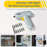 Equipped with 11 steel driver bits, it ensures versatility and precision in every task. The built-in auto LED light offers excellent visibility, even in dimly lit spaces, making it ideal for tight corners or low-light environments. The USB rechargeable feature means you can easily power it up anytime.