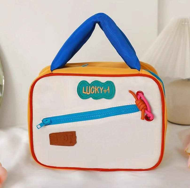 Stay stylish on the go with our 2024 new cute contrast color cosmetic bag. Featuring a large capacity, this portable storage solution is perfect for cosmetics and toiletries. Ideal for travel, it combines functionality with a trendy design, making it a must-have accessory for every woman!