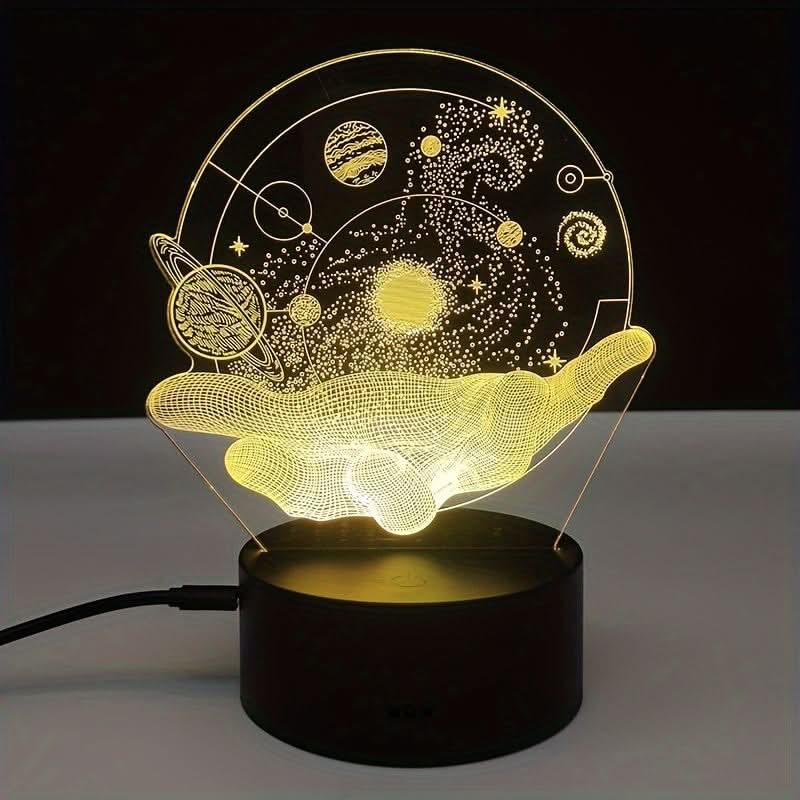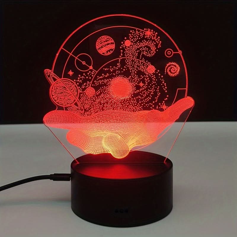 Transform your bedroom or living space with the mesmerizing Cosmic Planet 3D Night Light. This unique LED lamp creates a stunning, colorful light display that mimics a glowing planet, adding a cosmic touch to any room. Powered by USB and designed for tabletop use, it’s easy to set up and energy-efficient, requiring no batteries. The touch control allows you to effortlessly adjust the lighting to suit your mood, while the sleek black base complements any modern decor. Perfect for bedroom ambiance, this 3D night light also makes a thoughtful gift for birthdays, graduations, or Valentine’s Day for both him and her. Whether you're decorating your home or searching for the ideal gift, this cosmic night light offers both beauty and functionality, making any space feel like a starry wonderland. Ideal for anyone who loves unique, artistic lighting.