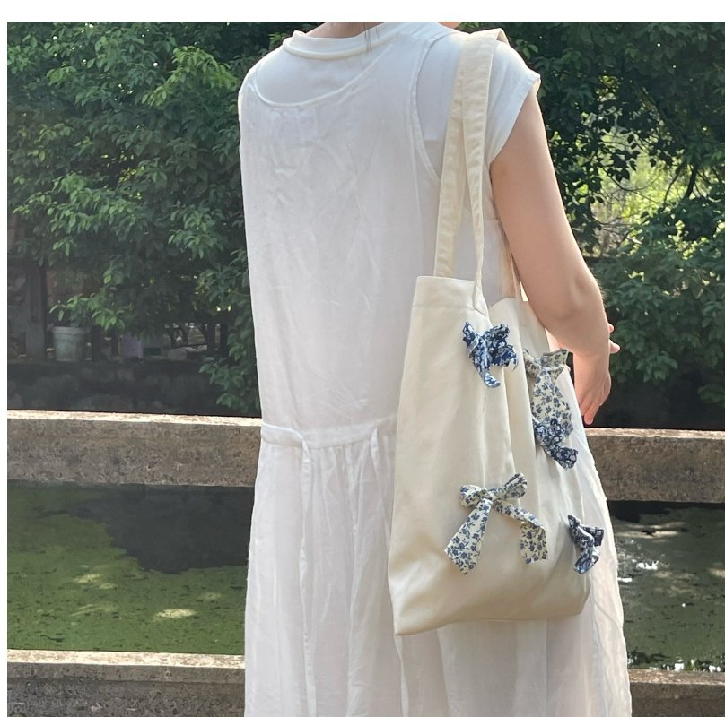 This cute cream off-white canvas bag features a charming three-dimensional bow, adding a touch of freshness to any outfit. Perfect for students, its niche design offers both style and practicality, making it a delightful and trendy accessory for everyday use.