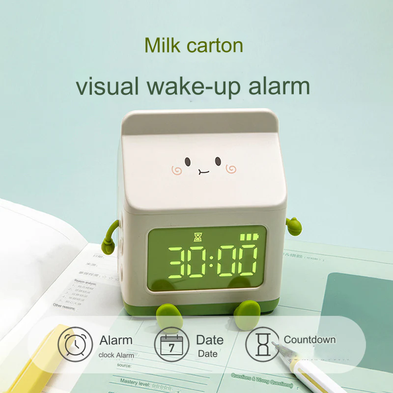 Wake up with a smile! This adorable milk box alarm clock is perfect for students and kids, featuring a fun countdown function and a compact design. Ideal for brightening up any bedroom while helping little ones stay on schedule!