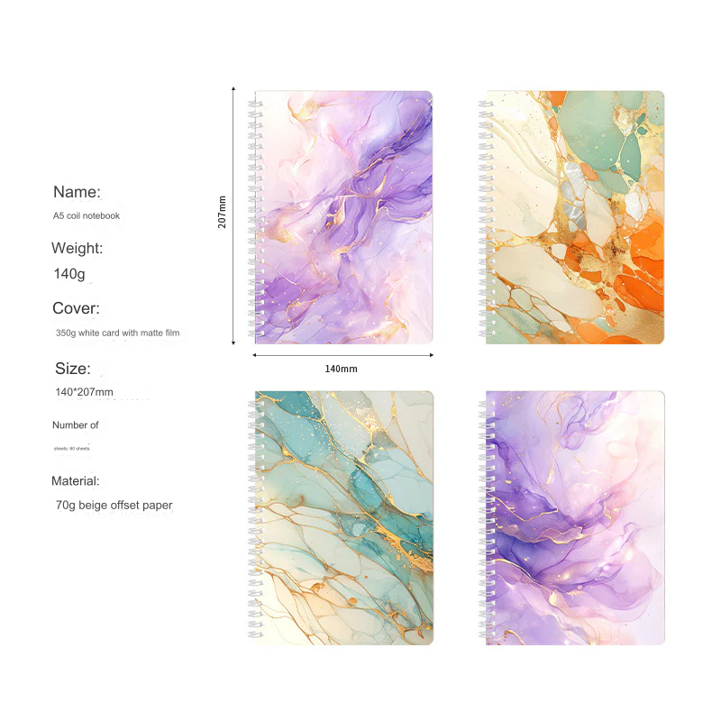 Elevate your stationery collection with this high-value 4-pack of marble-pattern coil notebooks. Featuring horizontal lined pages, these stylish notebooks are perfect for school, work, or personal use.