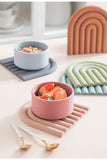 Protect your dining table with this vibrant silicone pot mat, perfect for insulation and placemats. Its colorful rainbow design adds a touch of fun while safeguarding surfaces from hot bowls and plates. Ideal for home use and hot-selling