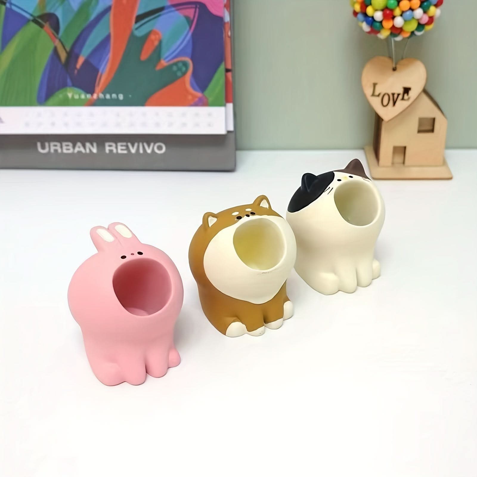 Ideal for adding a playful touch to your home or office, these holders make organizing your essentials fun and easy. Their compact size ensures they fit seamlessly on any desk or vanity, while the sturdy construction keeps your items secure and accessible. Whether you're organizing pens, brushes, or other small accessories, these charming animal holders are the perfect way to brighten up your desk. Keep your workspace tidy and cute with this delightful holder set!