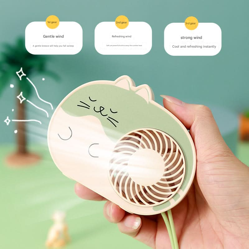 Stay cool in style with this adorable cat-themed mini fan, perfect for both handheld and desktop use. Designed with three adjustable wind speeds, it delivers a refreshing breeze to keep you comfortable whether you’re at home, in the office, or on the go.