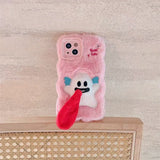 Keep your iPhone cozy and stylish with this adorable plush phone case, perfect for the autumn and winter seasons. Made from soft, high-quality plush fabric, it offers a snug and warm feel in your hand while protecting your device from scratches, bumps, and everyday wear. The creative pull-out tongue design adds a fun and unique touch, making it a delightful conversation starter.