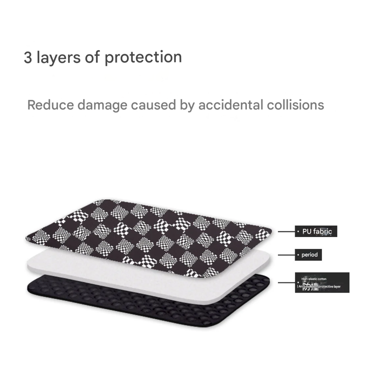 Sleek, strong, and smart — this Digital Grid checkered laptop sleeve is built for modern life. Designed to fit MacBook 14.2" and 16.2" models, it features a shock-resistant and wear-resistant PU exterior that stands up to daily wear while keeping your device safe. Inside, a soft high-elastic cotton lining offers extra cushioning, while the secure zippered sleeve ensures a snug fit during commutes or travel.