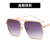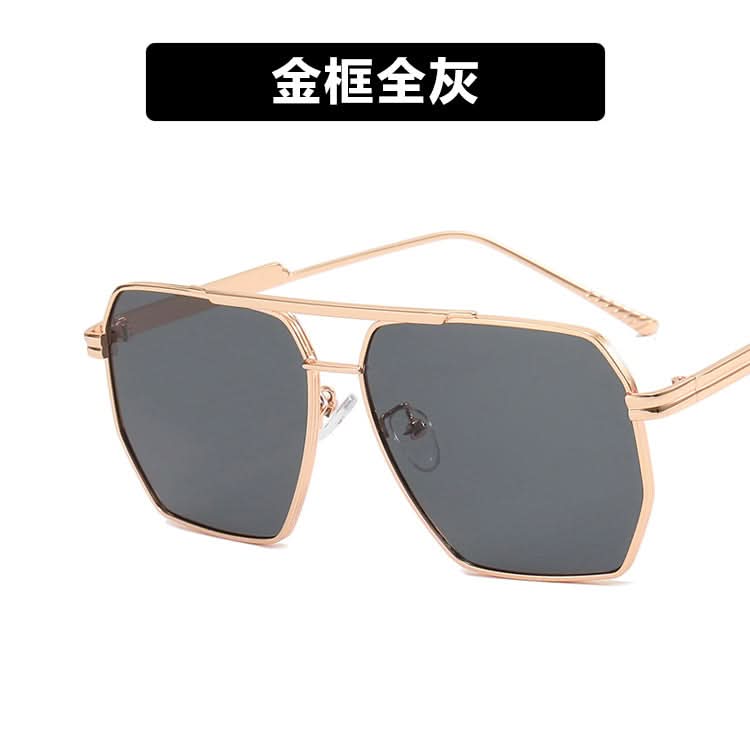 Upgrade your look with these stylish double-beam pilot sunglasses featuring a sleek gold frame and chic grey lenses. Designed with an irregular polygonal shape, they add a unique twist to the classic aviator style, giving you a sophisticated and fashion-forward edge. The full-frame design offers a secure and comfortable fit, perfect for all-day wear.