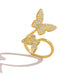 Add a touch of sparkle and sophistication with this Double Butterfly Diamond Ring, crafted from durable titanium steel and finished in radiant gold. The elegant twin-butterfly design, encrusted with dazzling cubic zirconia stones, symbolizes beauty and transformation, making it perfect for everyday wear or special occasions. Its adjustable fit ensures comfort for all, while the shimmering finish offers timeless charm and modern appeal. Lightweight yet sturdy, this piece blends luxury with versatility—ideal for gifting or treating yourself. Sourced from Worldwide Suppliers, it brings you international fashion flair in a design that effortlessly enhances any outfit.