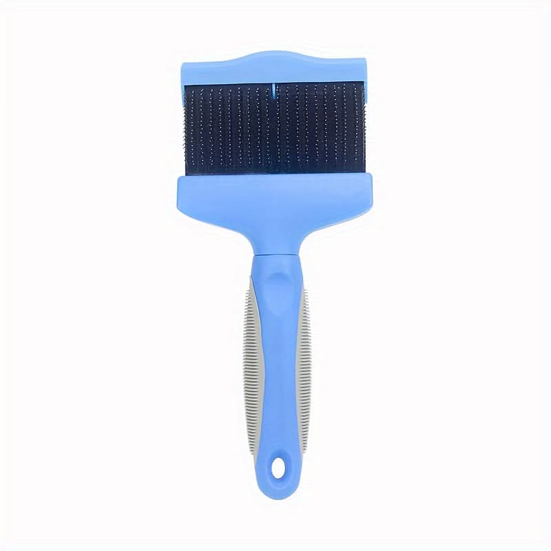 Keep your furry friend’s coat sleek and tangle-free with this double-sided dog grooming brush. Designed for both dogs and cats, this versatile tool combines a stainless steel comb for gentle detangling with a bristle brush to remove loose fur and dirt, making grooming a breeze. The durable plastic handle provides a comfortable grip for extended grooming sessions, while its lightweight design ensures easy handling. Available in stylish blue and pink colors, this 1-piece pet comb is perfect for pets of all sizes.