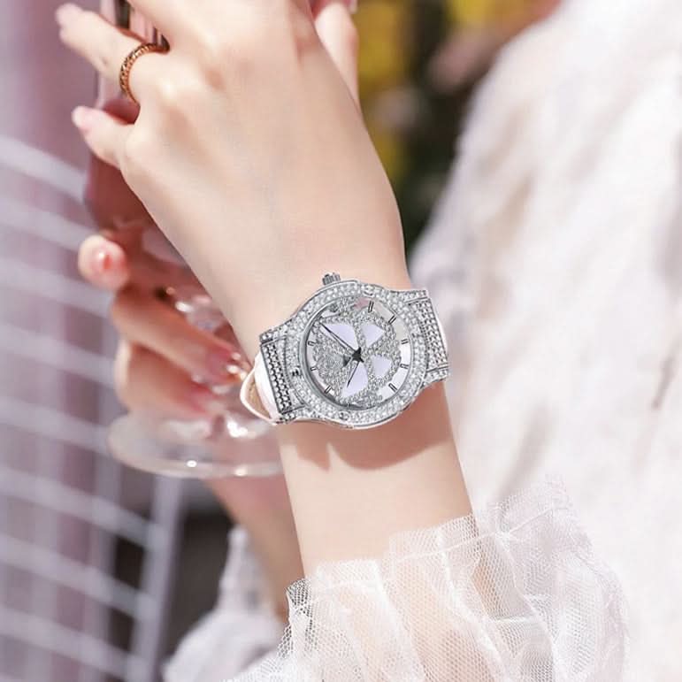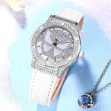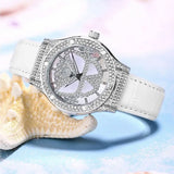 The watch features a mesmerizing starry sky dial with delicate butterfly-inspired accents that capture light beautifully. The polished stainless steel case complements the elegant design, creating a perfect balance between sophistication and charm.