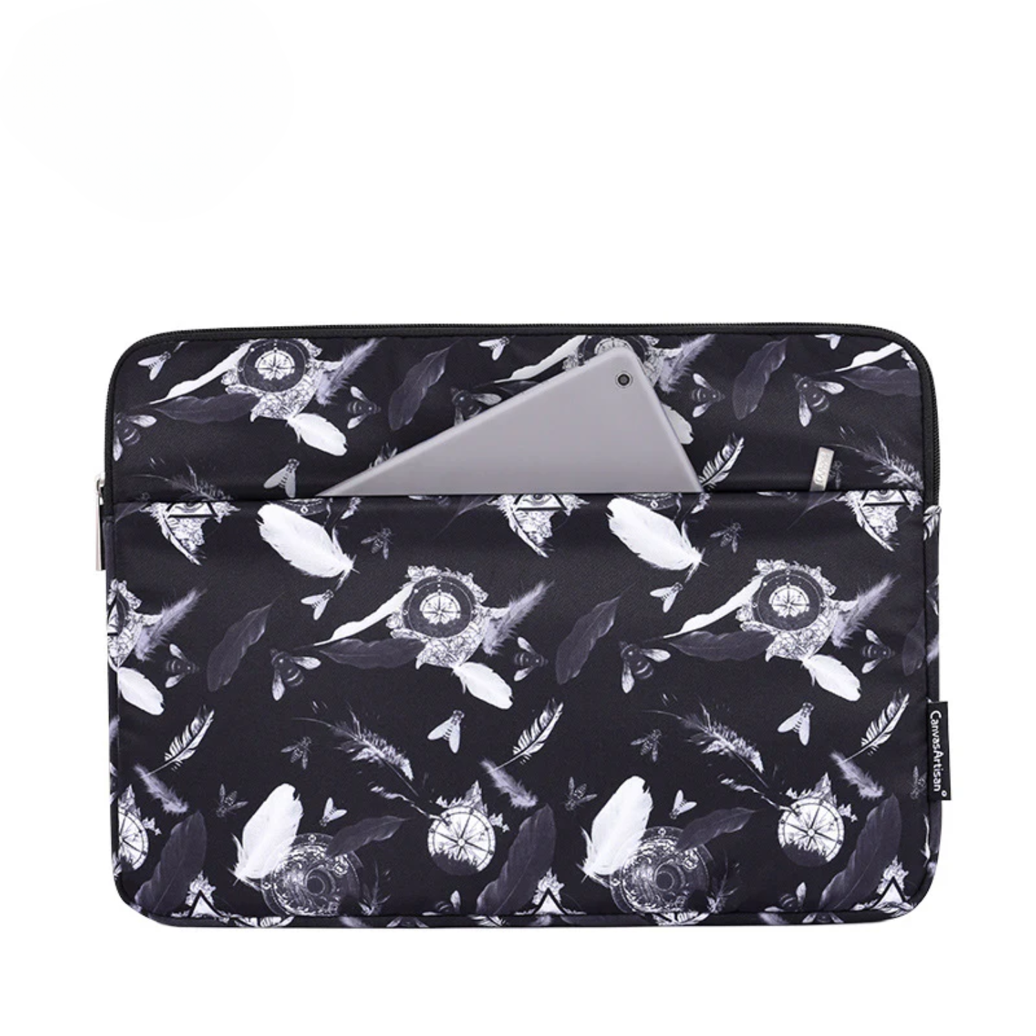Navigate your day in style with the Dreamscape Compass sleeve, designed for tablets and laptops up to 15", including the iPad Pro 12.9", Xiaomi, Huawei, Lenovo, and Microsoft devices. Featuring a vintage-inspired print with compass motifs, feathers, and butterflies, this sleeve blends creativity with practical protection.