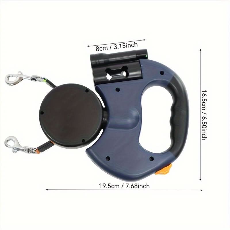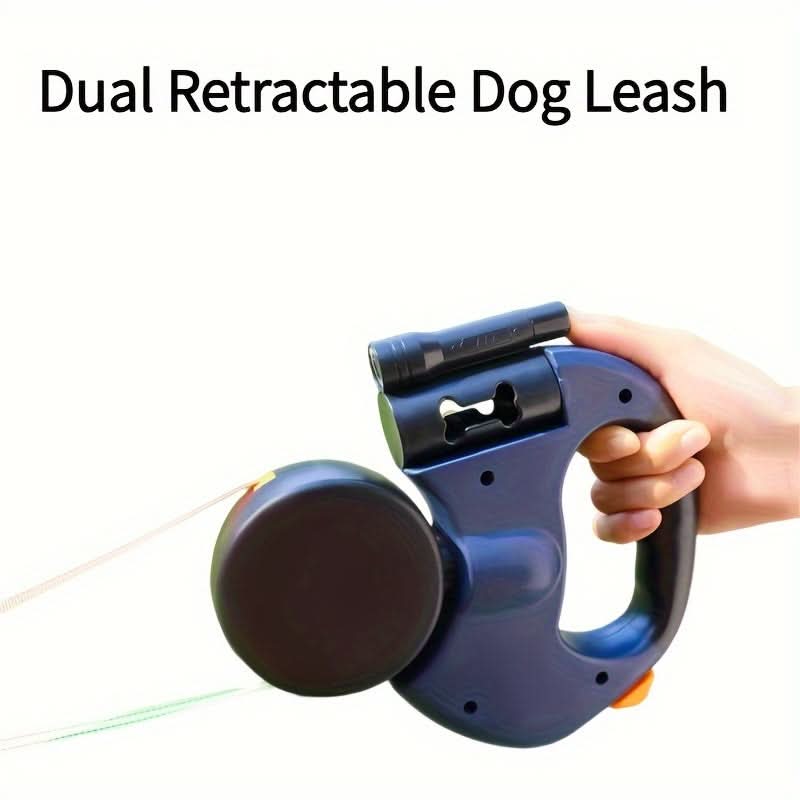 Walk your two small to medium-sized dogs with ease using this Dual-Ended Retractable Dog Leash. Designed with convenience in mind, this leash features a one-button control for easy extension and retraction, giving you full control during walks or runs. Made from durable ABS material and featuring a strong nylon traction rope, it’s built to withstand daily use, providing a reliable and safe walking experience for your pets. The dual-ended design allows you to walk two dogs at once, minimizing tangling and offering greater flexibility. Whether you’re out for a leisurely stroll or a jog, this leash is the perfect solution for active pet owners. Its lightweight and ergonomic design ensure comfort and ease of use for both you and your furry companions. Ideal for running, walking, and training, this leash makes walking two dogs a breeze.