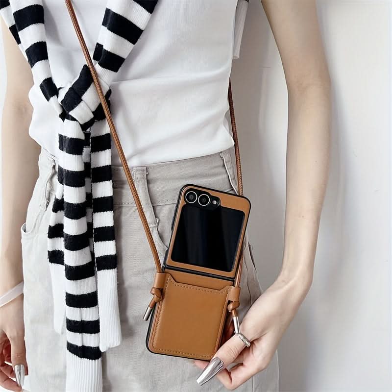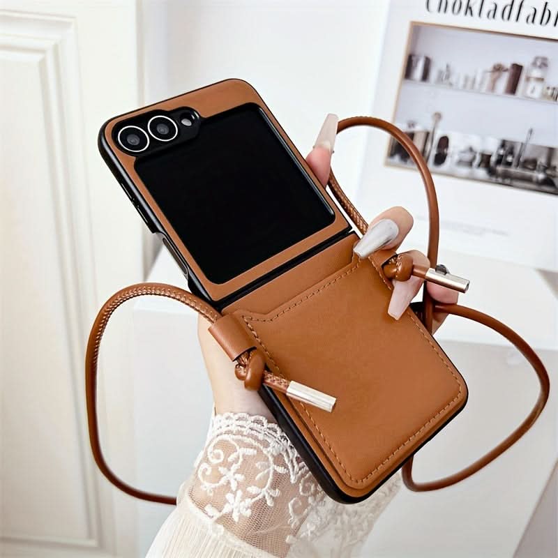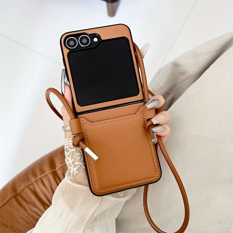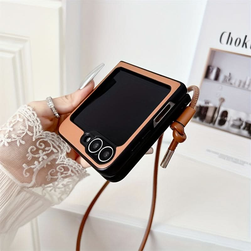 Protect your Samsung Galaxy Z Flip in style with this durable, foldable case. Made from high-quality polycarbonate (PC), this case delivers superior protection against scratches, bumps, and daily wear while maintaining a slim, lightweight profile. Its retro-inspired design adds a touch of elegance, making it as stylish as it is practical. Featuring a convenient lanyard, it provides added security and ease of carrying, perfect for users on the move. With precise cutouts and a foldable design, this case ensures seamless access to all buttons, ports, and features of your Galaxy Z Flip. Built to last and designed to impress, it’s the ideal choice for anyone looking to keep their phone safe without compromising on style.