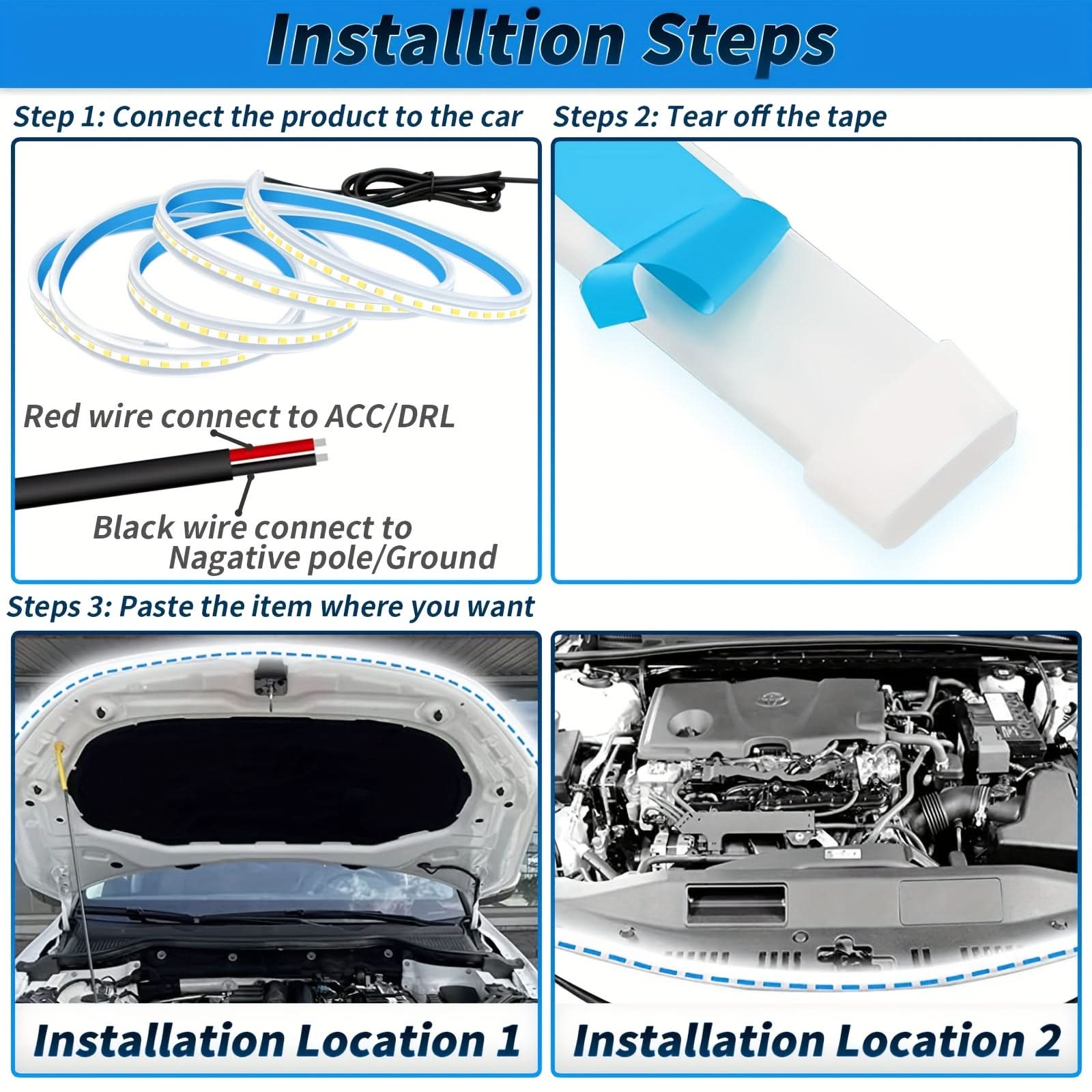Upgrade your car’s front-end style with this 70-inch Dynamic LED Hood Light Strip, designed to deliver a sleek, eye-catching glow with scanning startup and streamer effects. This white LED light bar enhances both your vehicle’s appearance and nighttime visibility, adding a modern, premium touch. Compatible with DC12V systems, it’s easy to install—no complicated tools required. Whether you're customizing for a show or simply love standout aesthetics, this light strip is a go-to for car enthusiasts. Handpicked from abroad and featured in our International Collection, it's made with quality materials to ensure durability in all weather conditions. A perfect gift or upgrade for any car owner looking for automotive ambient lighting, car exterior mods, or LED hood strip lighting. Style meets function—right from the global market to your driveway.