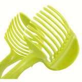 Achieve perfect slices every time with this Easy-Grip Tomato & Lemon Slicer, a must-have tool for any kitchen. Designed with a secure, ergonomic handle, this gadget ensures a steady grip, so slicing tomatoes, lemons, and other soft fruits is fast, safe, and easy. The durable plastic frame is lightweight and food-safe, making it ideal for daily use. Simply place the fruit in the slicer, press, and enjoy evenly cut slices with minimal effort—perfect for salads, sandwiches, and garnishes. The compact design saves kitchen space, while the dishwasher-safe construction makes cleanup a breeze. Enhance your cooking experience with this handy, efficient slicer that’s sure to become your new kitchen favorite.