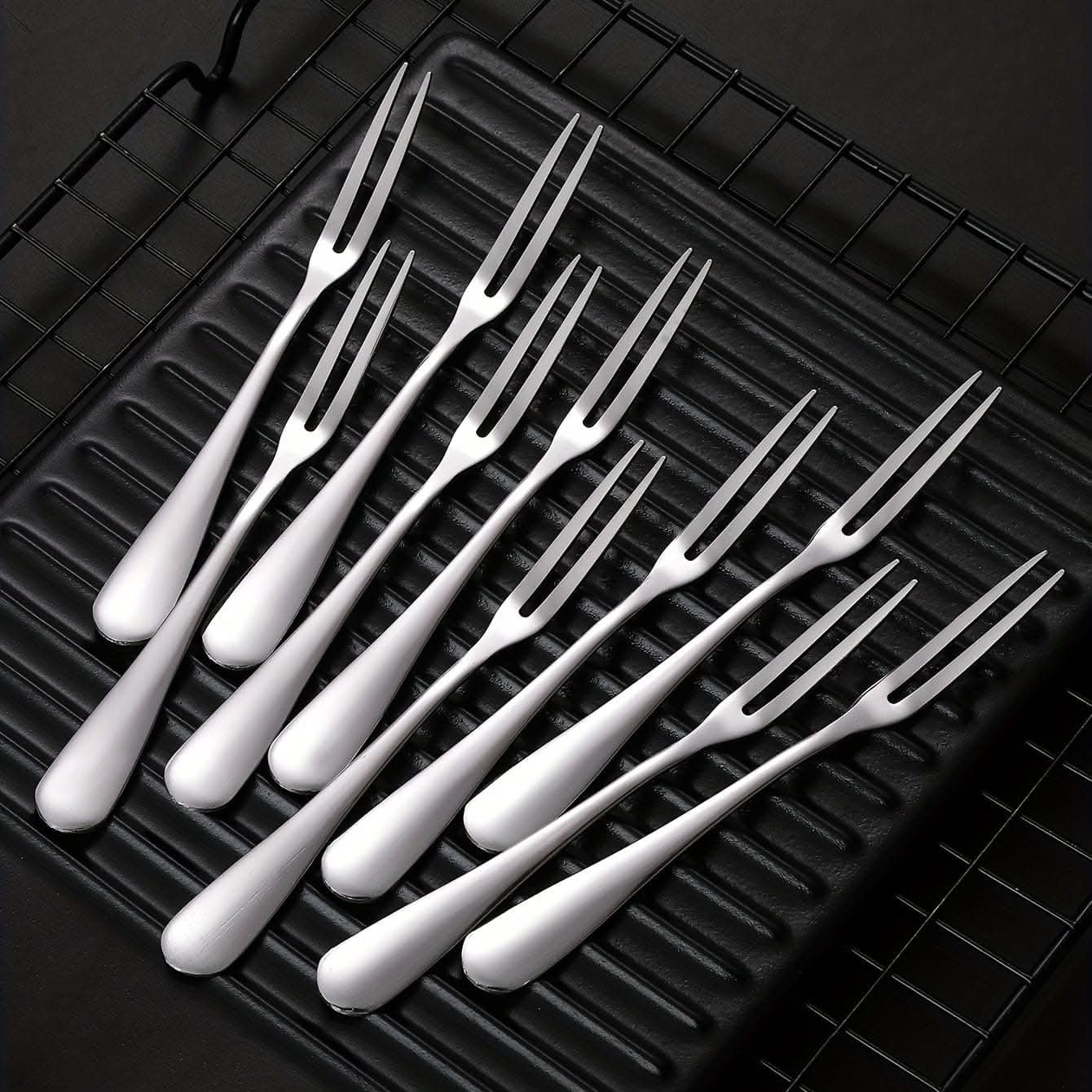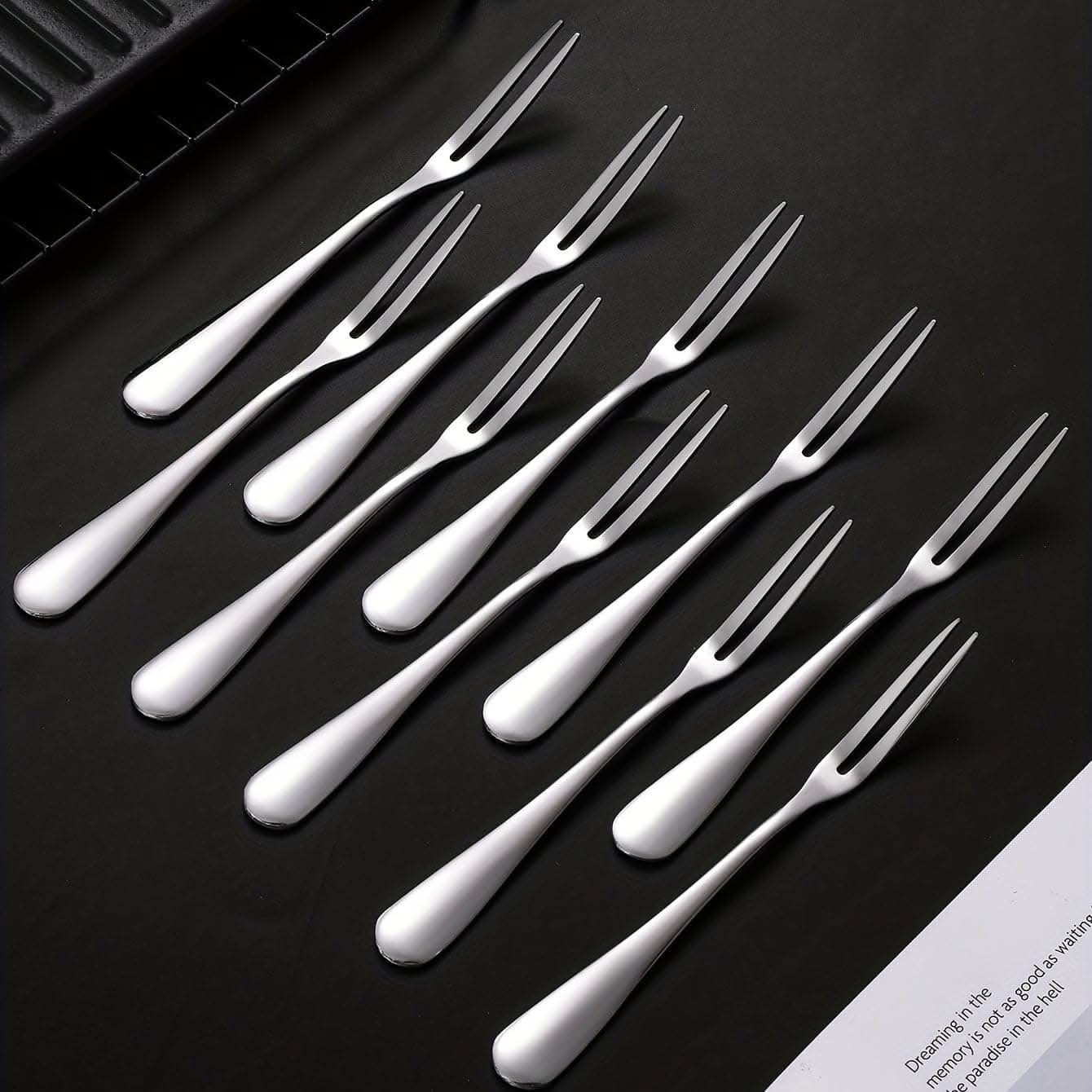 Elevate your dining experience with this 10-piece stainless steel fork set, designed to bring both style and functionality to your table. Perfect for fruit, desserts, salads, and more, these versatile forks offer a sleek, modern look that complements any kitchen décor. Made from high-quality, dishwasher-safe stainless steel, they are durable, rust-resistant, and easy to maintain. Whether you're hosting a dinner party or enjoying a casual meal, these forks provide the perfect balance of elegance and practicality. The reusable design makes them an eco-friendly choice for daily use. Upgrade your kitchenware collection with this essential set of forks that combine timeless style with long-lasting performance. Ideal for anyone seeking reliable and sophisticated dining tools.