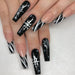 Elevate your nail game this holiday season with these elegant black and nude coffin press-on nails. Featuring a chic striped pattern paired with delicate snowflake designs, these long acrylic nails add a sophisticated festive touch to any look. Easy to apply and remove, the glue-on style ensures a secure fit without damaging your natural nails. Perfect for special occasions or everyday glam, these nails combine style and convenience effortlessly. Handpicked from Abroad, they bring international flair straight to your fingertips. Whether you're attending a holiday party or just love stylish nail art, these snowflake press-on nails provide a flawless finish and lasting wear. Upgrade your manicure with this beautiful blend of festive charm and modern elegance.
