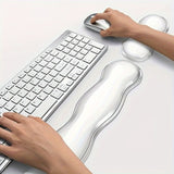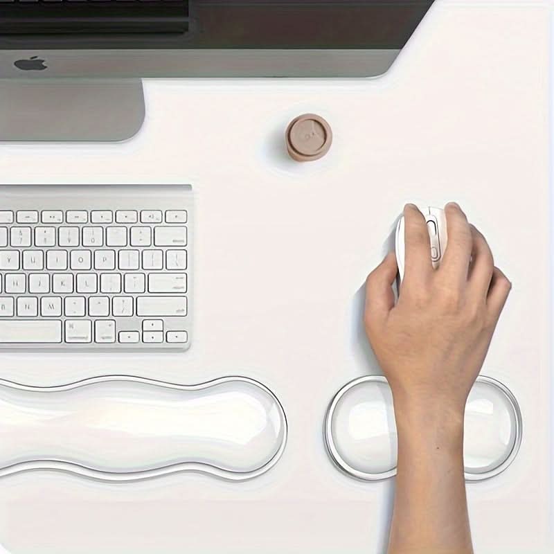 The transparent design blends seamlessly with any workspace, adding a clean, modern look while providing superior comfort. The non-slip base ensures stability, preventing the rests from shifting during use. Ideal for long hours at the desk, this set promotes better wrist alignment, helping to prevent discomfort or injury. Whether you're typing, gaming, or navigating through tasks, this ergonomic wrist rest set is perfect for anyone seeking to improve their productivity and comfort at work or home. Boost your efficiency and comfort today!