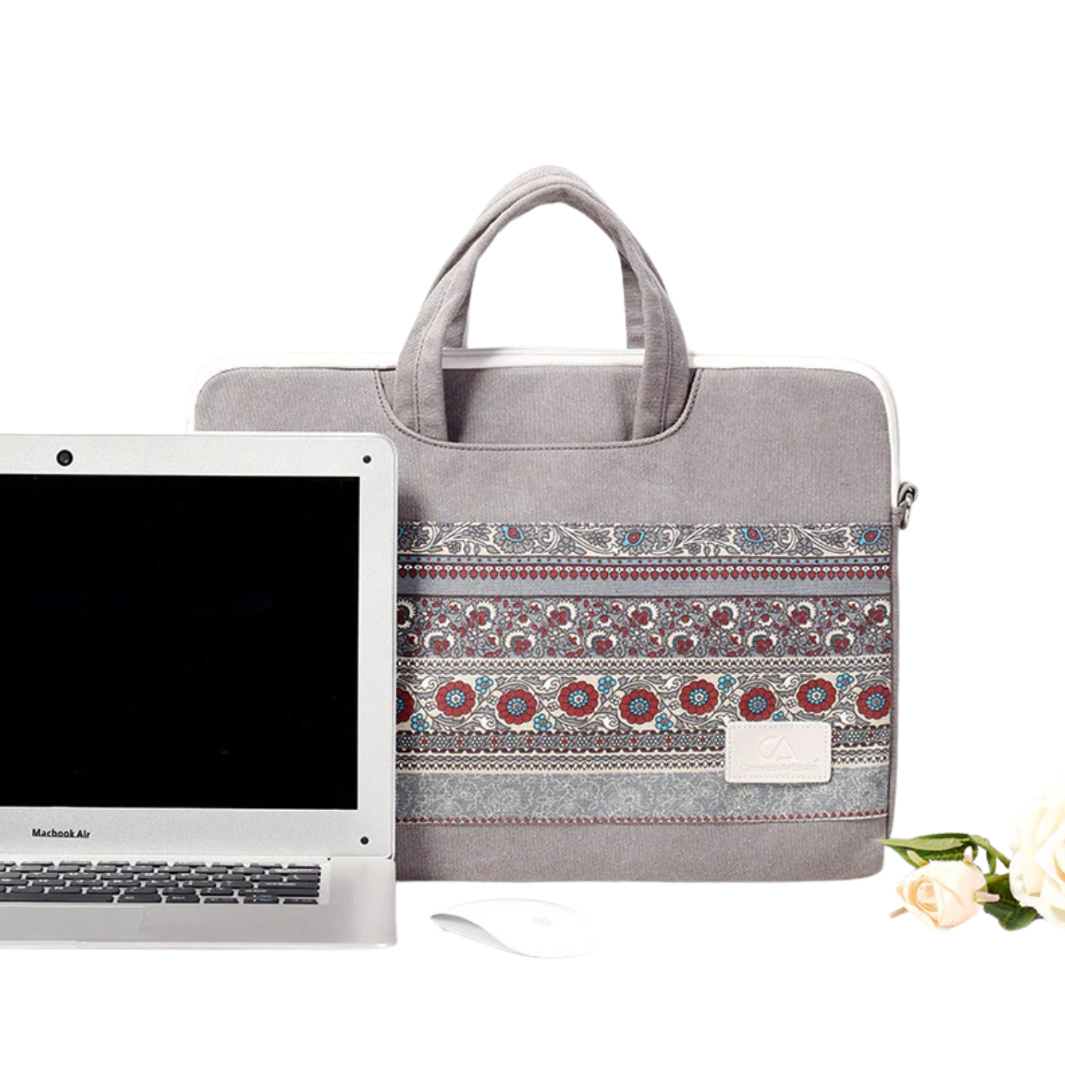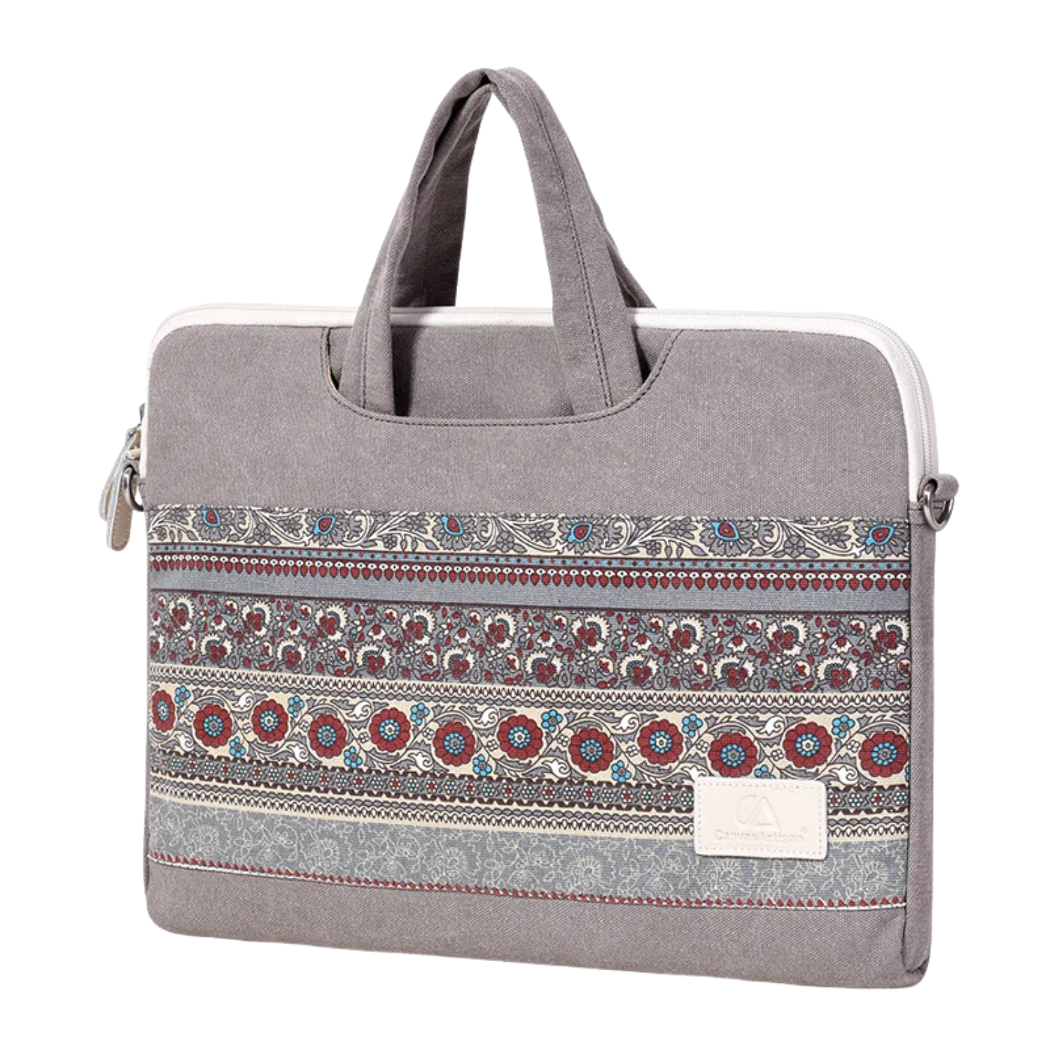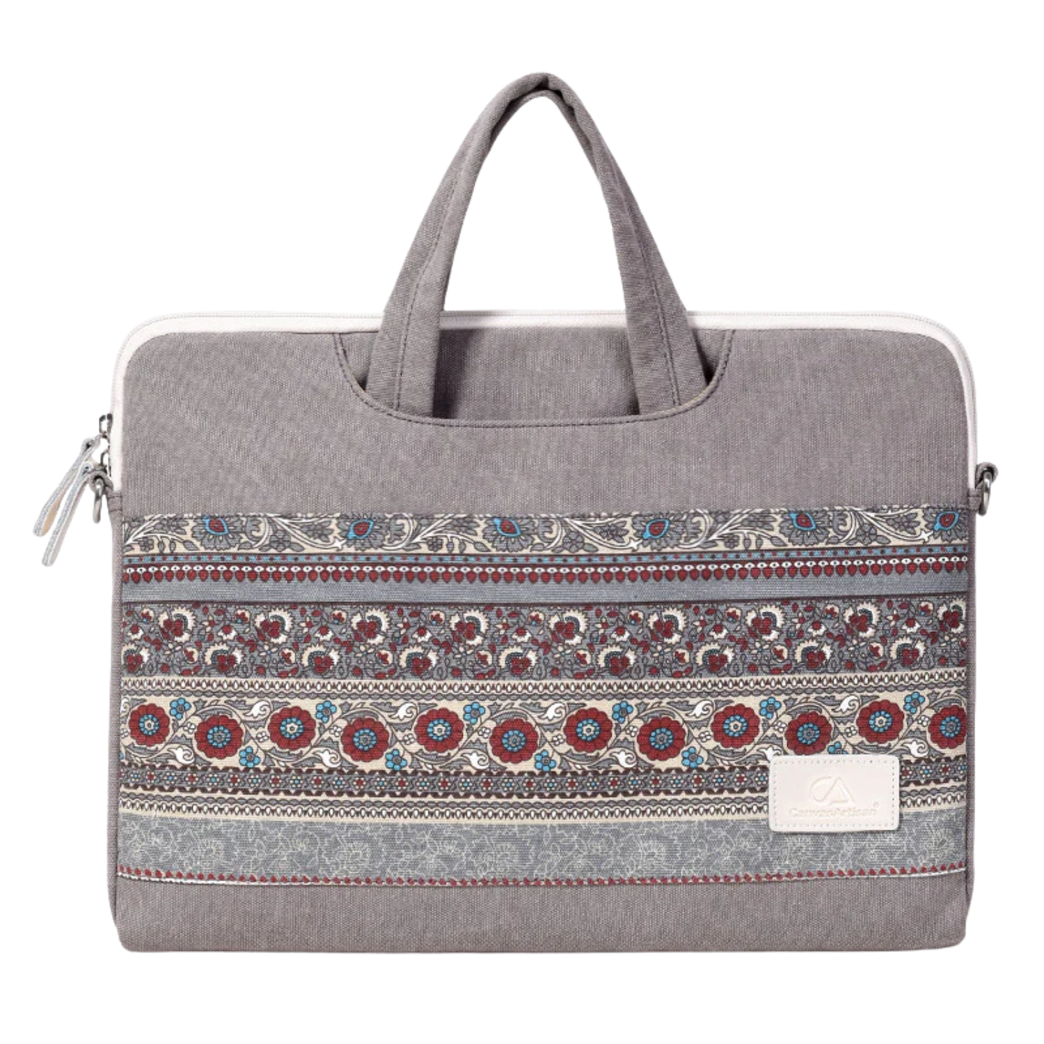 Carry your tech with flair and security in this Ethnic Canvas Laptop Bag. Crafted from durable canvas, it offers breathability, waterproofing, wear resistance, and shock protection—ideal for daily commutes or travel. Lined with a soft polyester-cotton blend, it features a zipper-secured main compartment that comfortably houses 13–15″ laptops, along with dedicated pockets for your phone and IDs—keeping essentials organized and within reach.