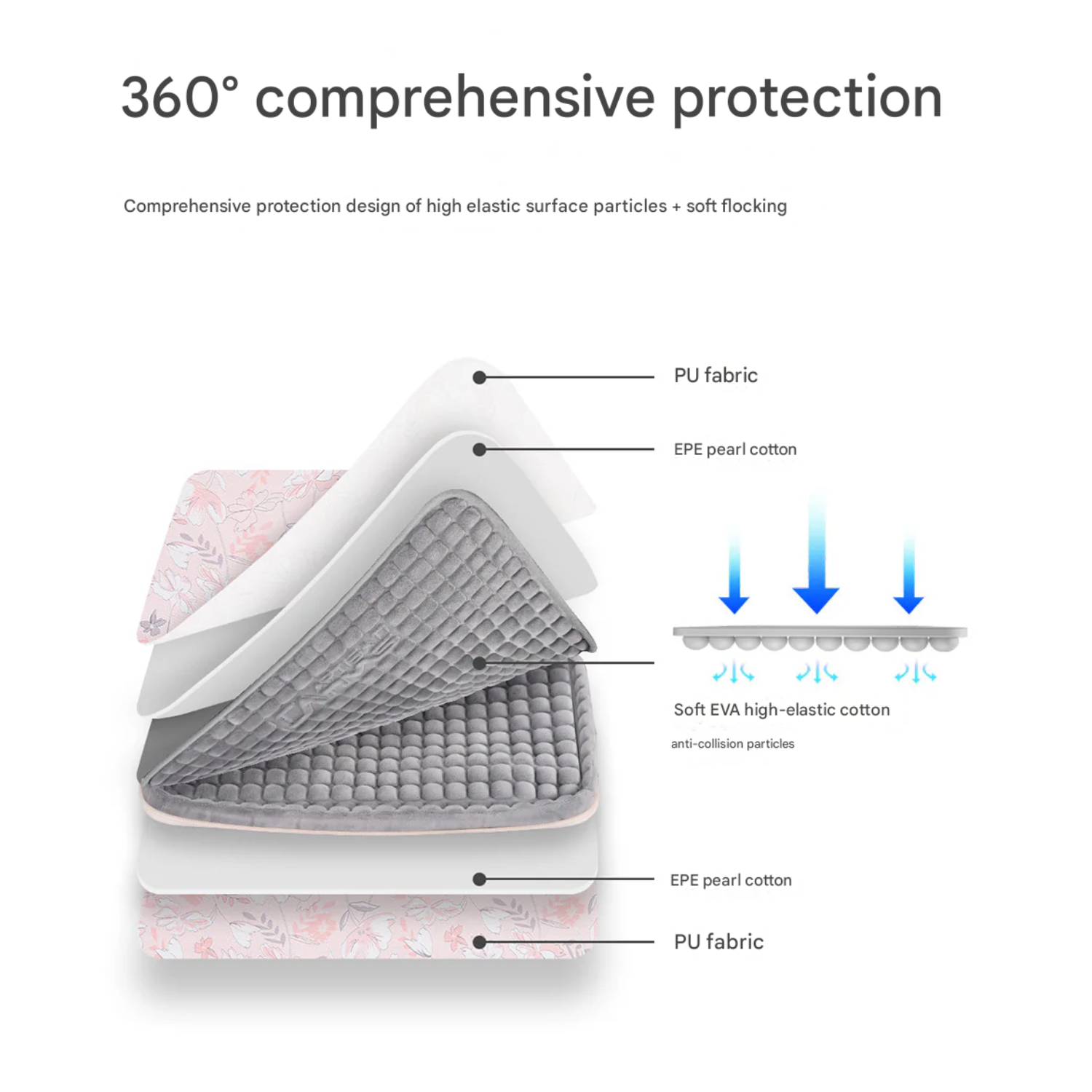 Travel smart and stylish with this floral laptop bag designed for 13" and 15" laptops and tablets. Crafted from durable PU leather and lined with soft polyester, this bag is both shock-resistant and wear-resistant, offering all-around protection for your device. With two zippered compartments, it provides space for your laptop and daily essentials like chargers or stationery, making it perfect for work, school, or travel. The soft light pink blossom print adds a touch of elegance, while the unisex design suits everyone. Whether you're commuting or heading out on a trip, its lightweight, leisure travel style ensures comfort without compromising function.